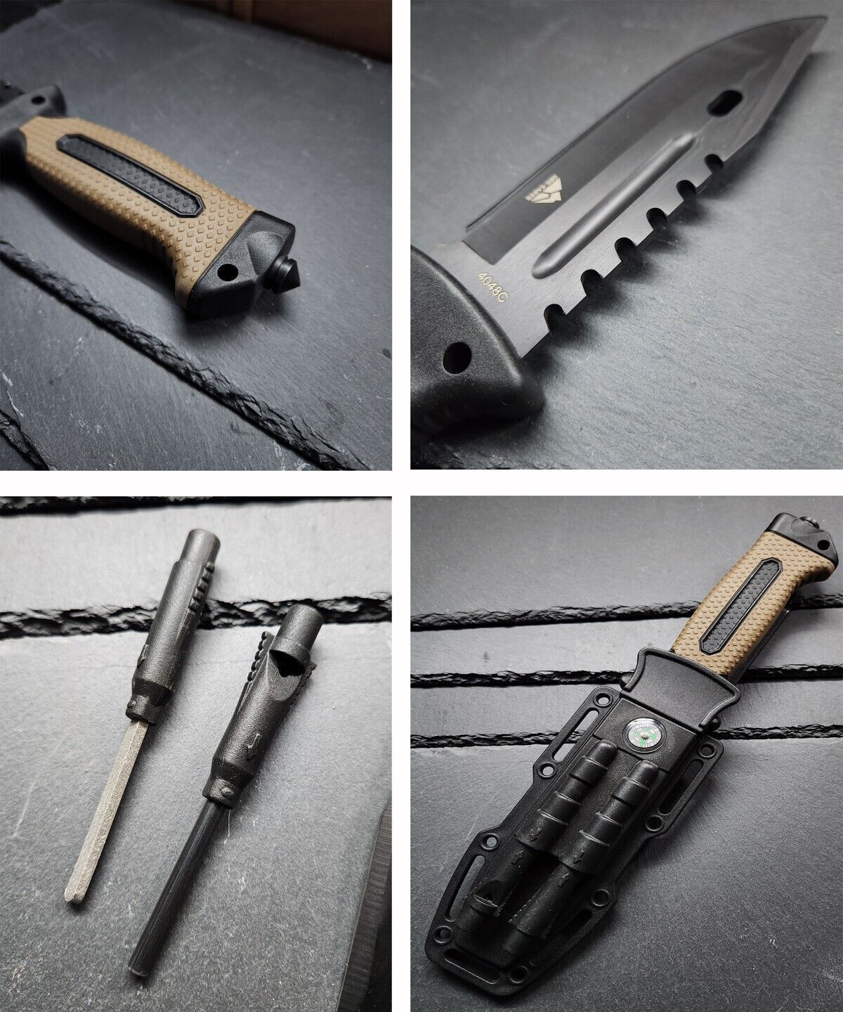 KaSul®| Taktisches 4Tlg. Buschmesser 4048A Grau Jagdmesser Bowie Knife Hunting