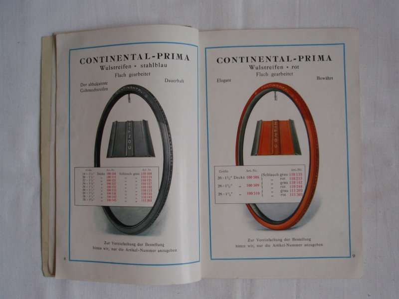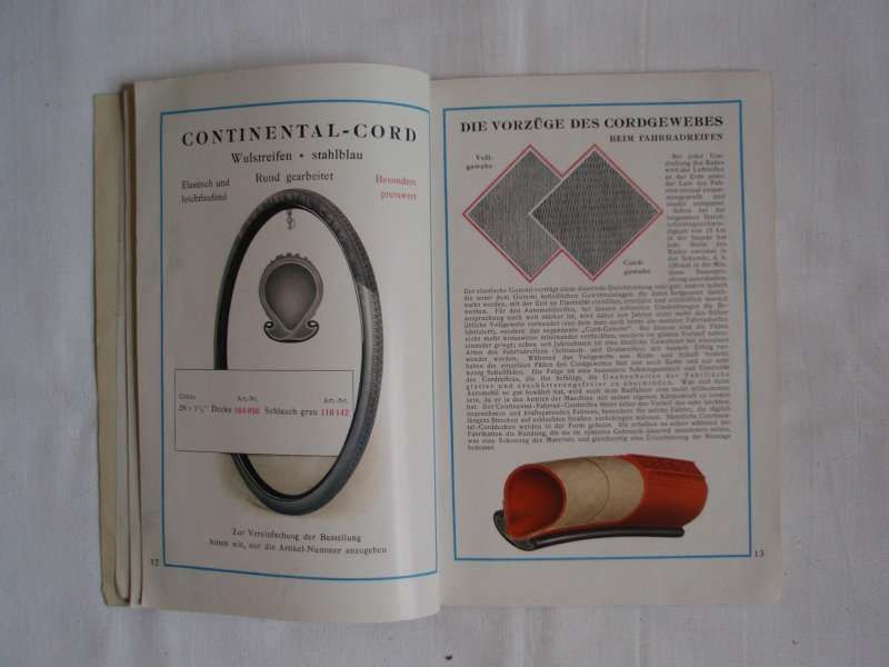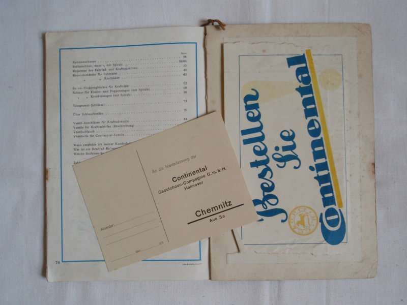 Katalog Continental Zubehör Fahrrad Kraftrad Auto Motorrad Oldtimer 1930