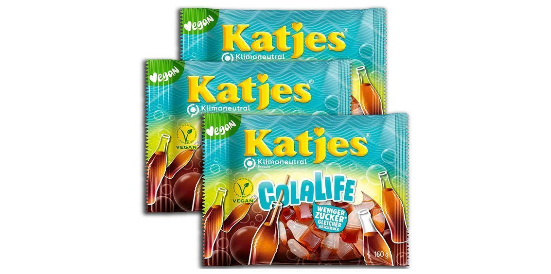 Katjes ColaLife Fruchtgummi je 160g Vegan ohne Palmöl weniger Zucker 3 Stückzahl