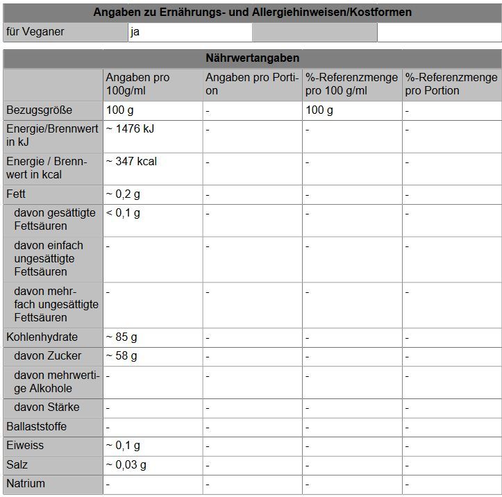 Lebensmittelspezifikationen: