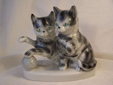 Gräfenthal Porzellan Figur - " Katzen mit Wollknäuel " *