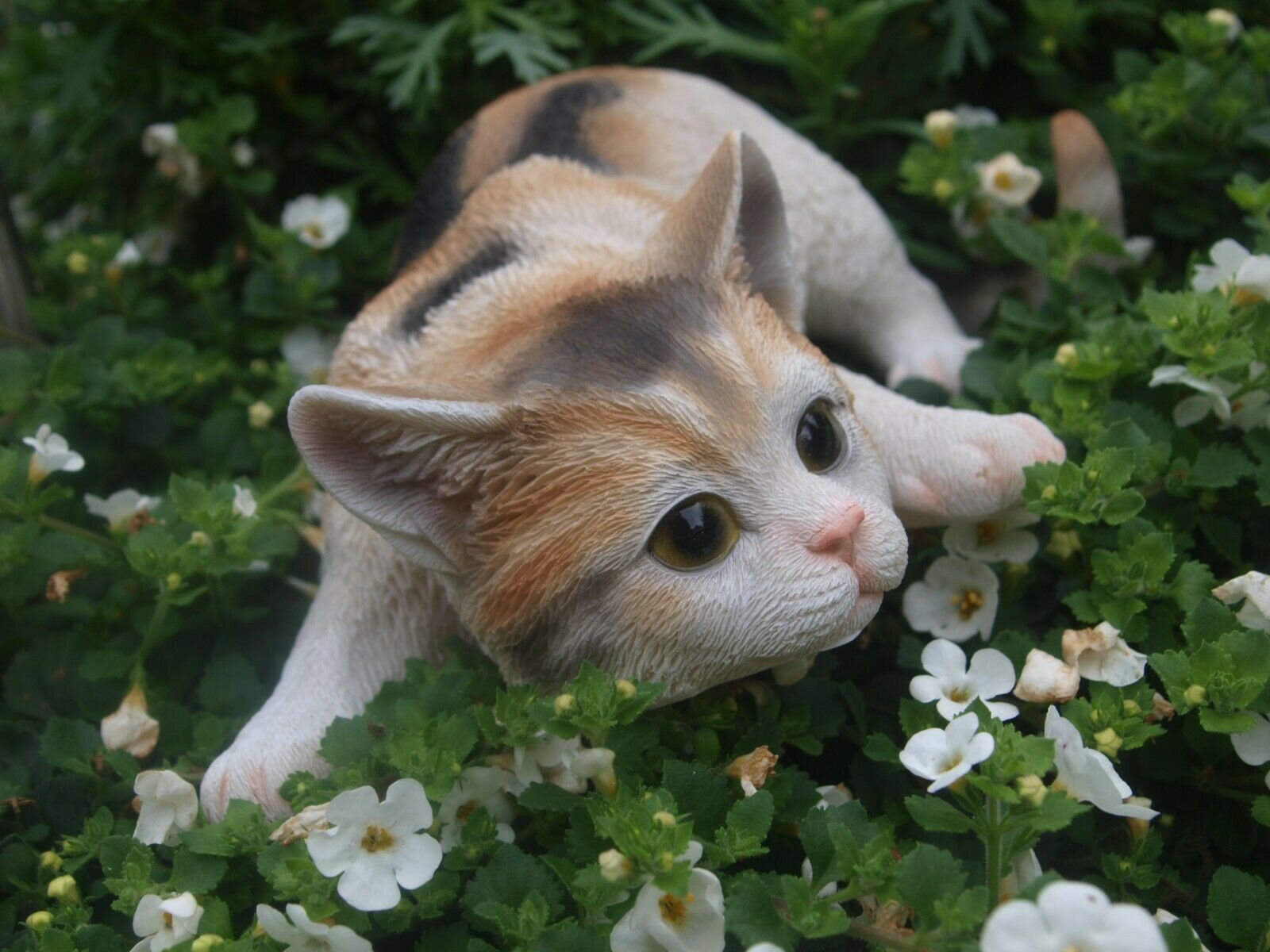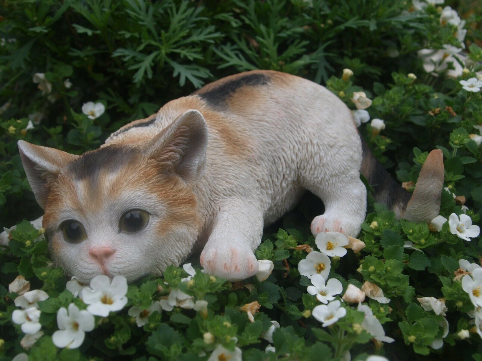 Katze Deko Figur Baby Schildpatt Glückskatze lebensgroß Gartenfigur HOTANT
