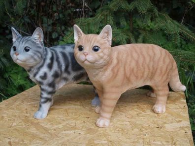 • Katze Deko Figur lebensecht grau/ rot wetterfest Garten Skulptur stehend NEU HOTA