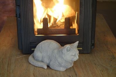 • Katze Deko Figur Grau oder Rot 44cm lebensgroß liegend wetterfest Gartenfigur HO