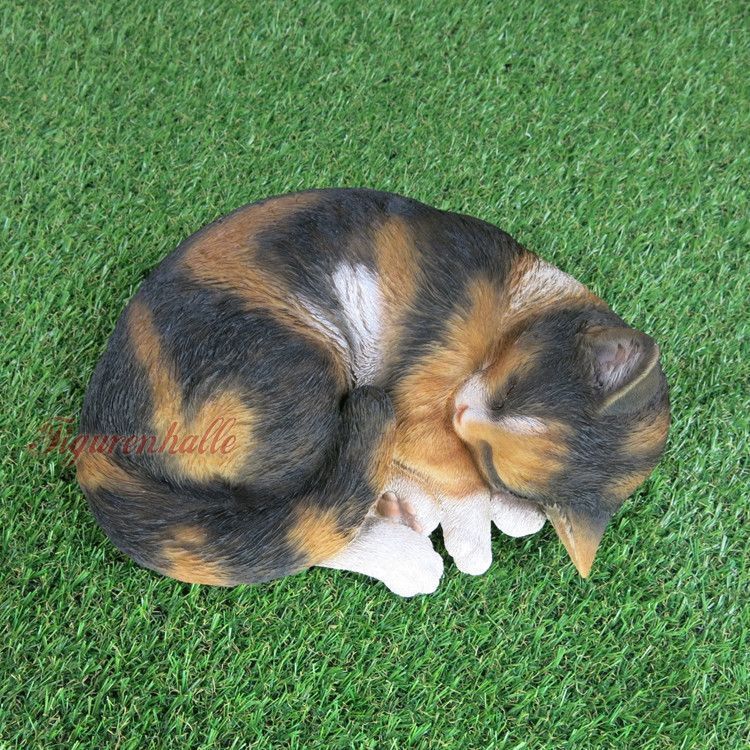Katze Kätzchen schlafend Figur Statue Skulptur Deko Gartenfigur Fan Artikel Garten