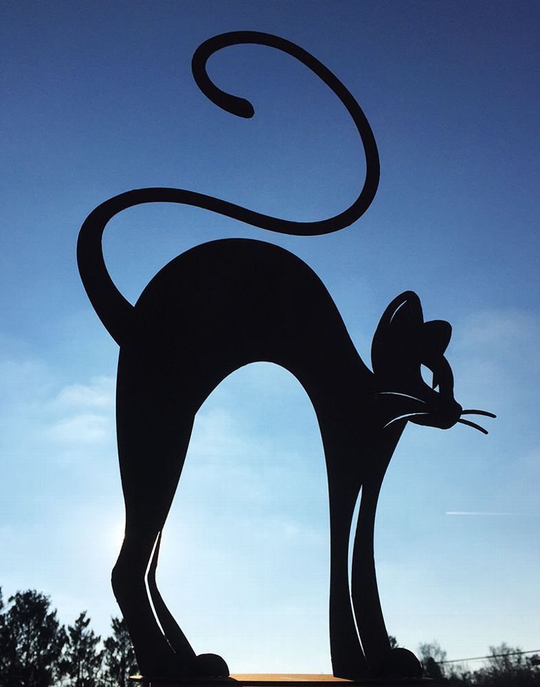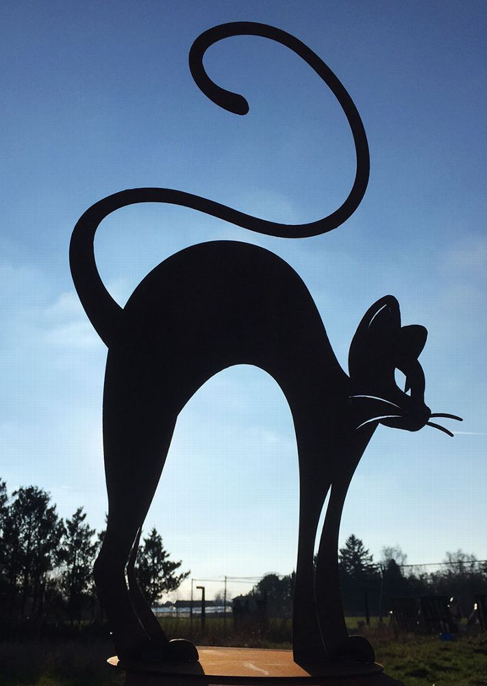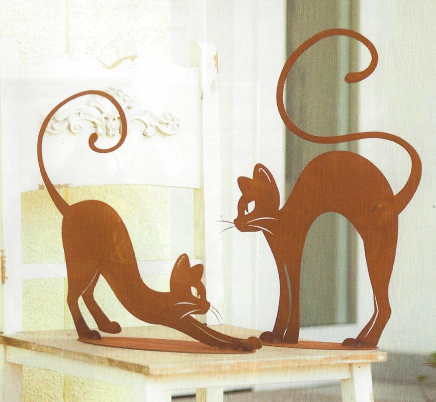 KATZE MIT BUCKEL elegantes Kätzchen 51x32cm Rost Edelrost Metall Figur Rostfigur