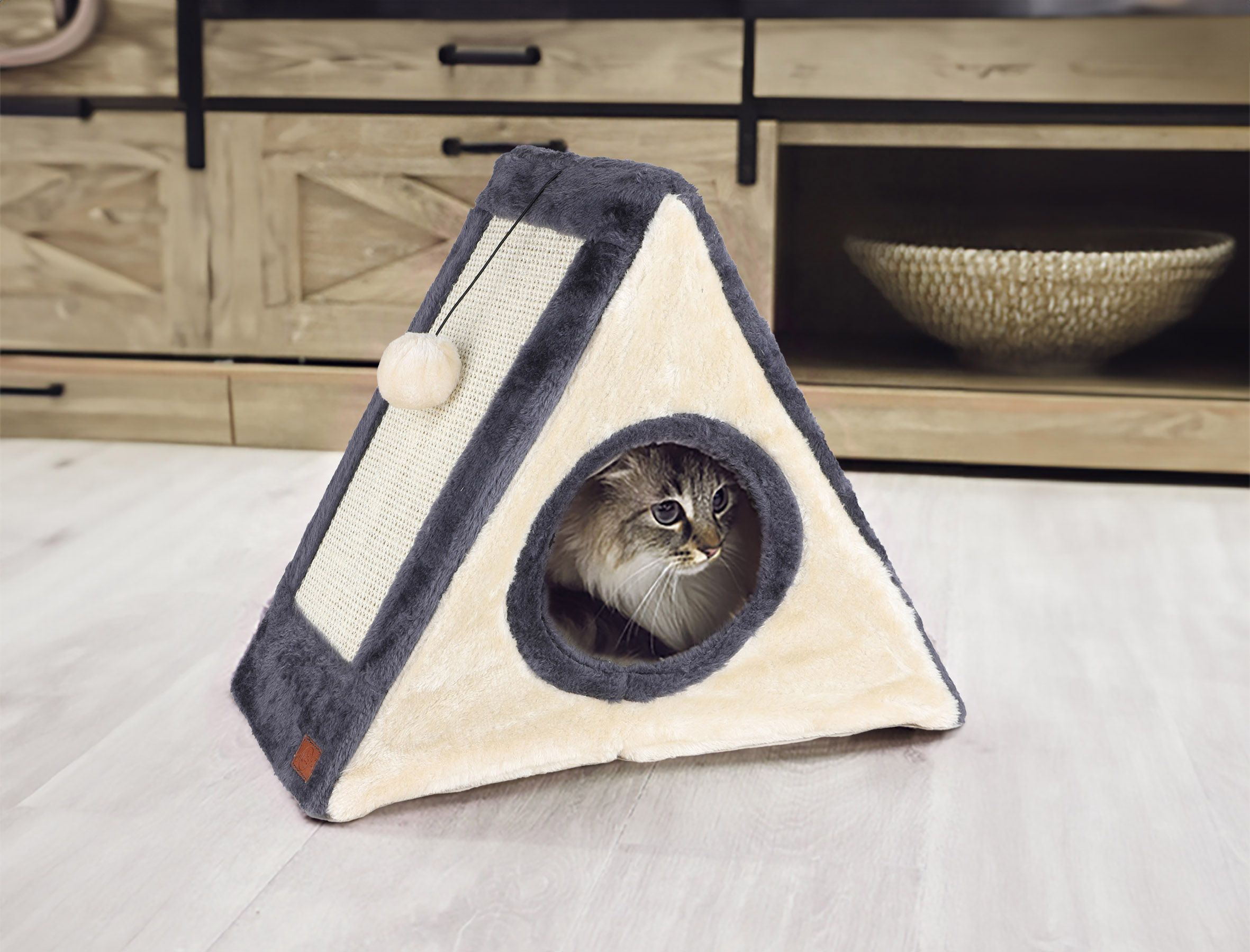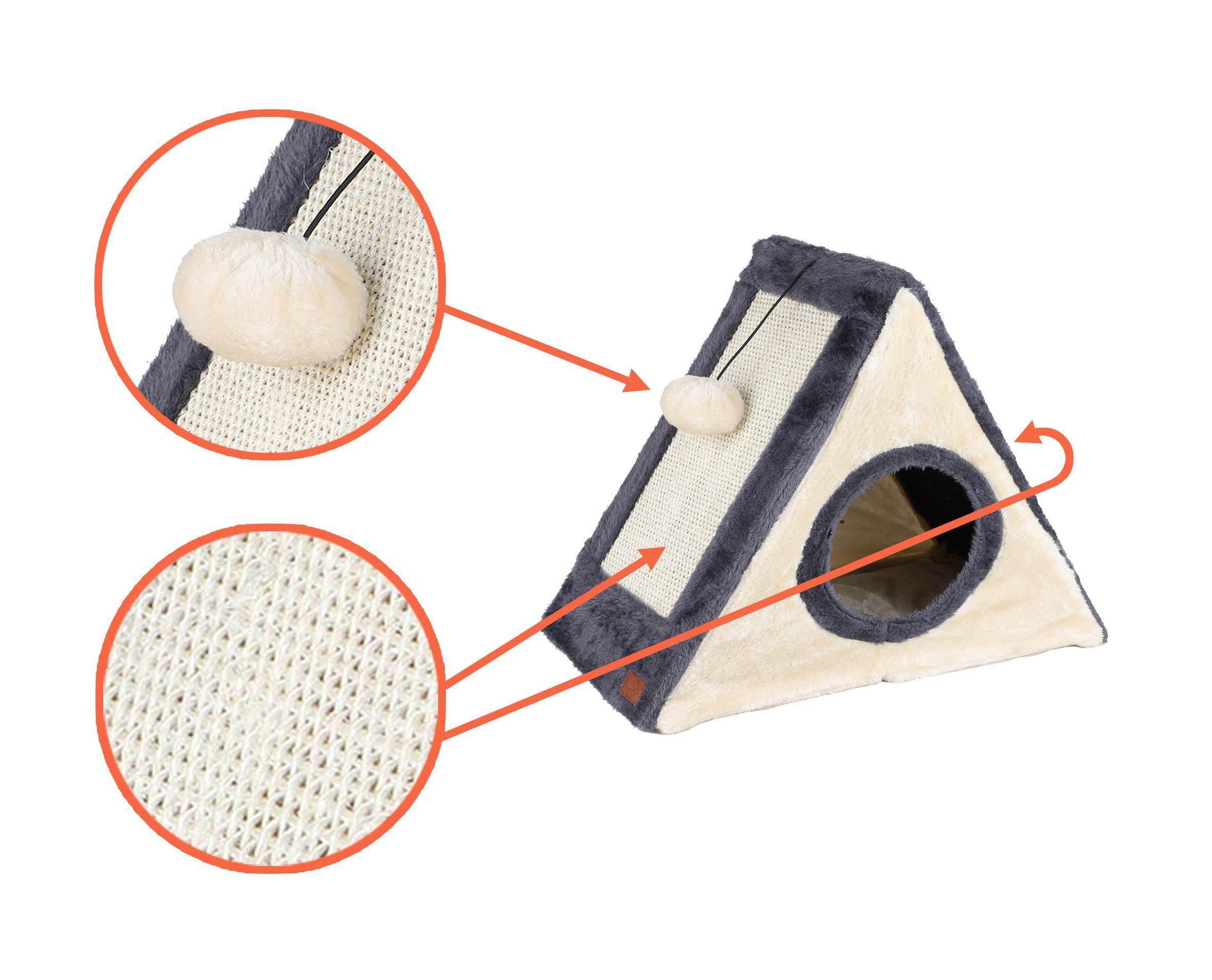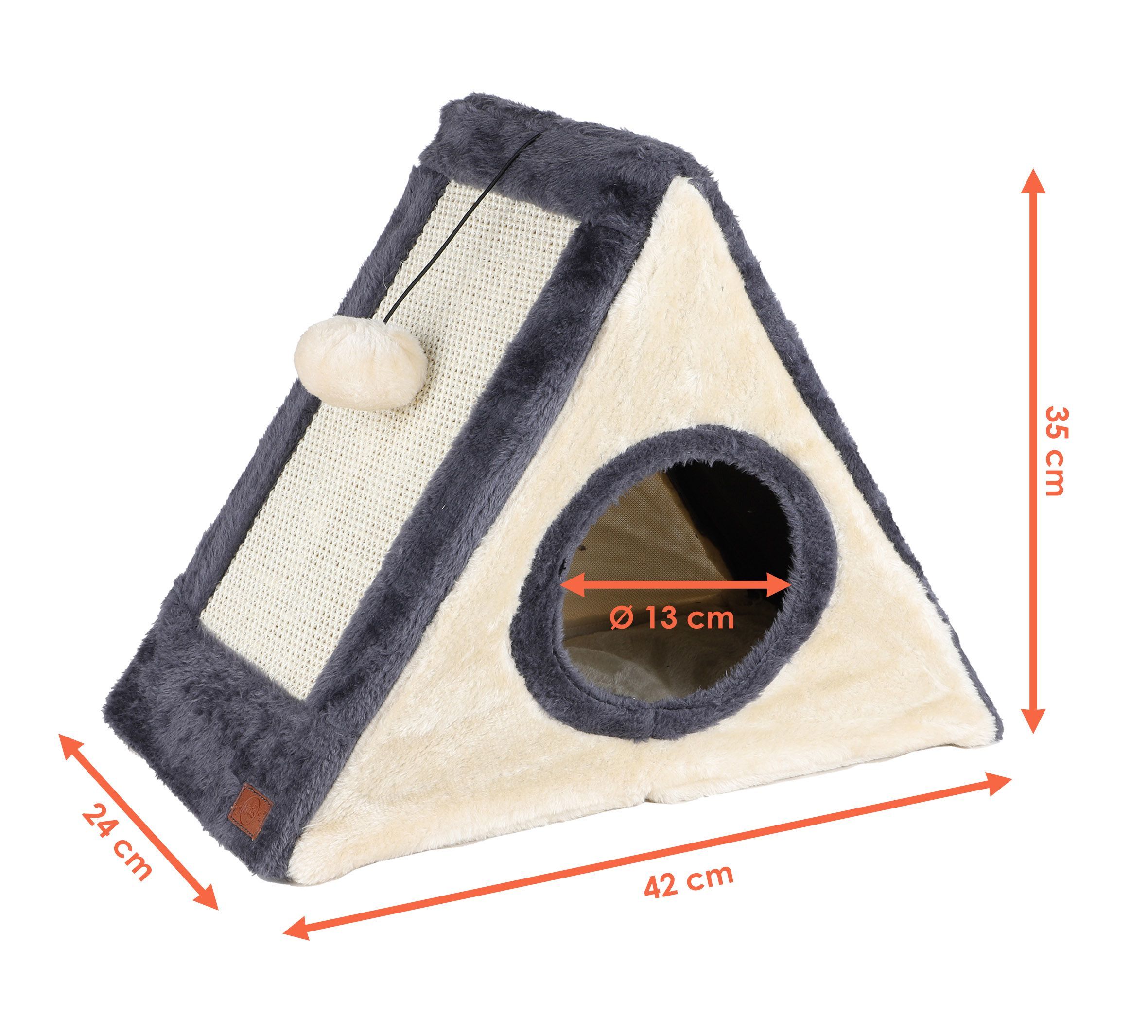 Kuschelhöhle für Katzen aus Polyester mit 2 Kratzbrettern und Spielball - ca. 42 x 35 cm