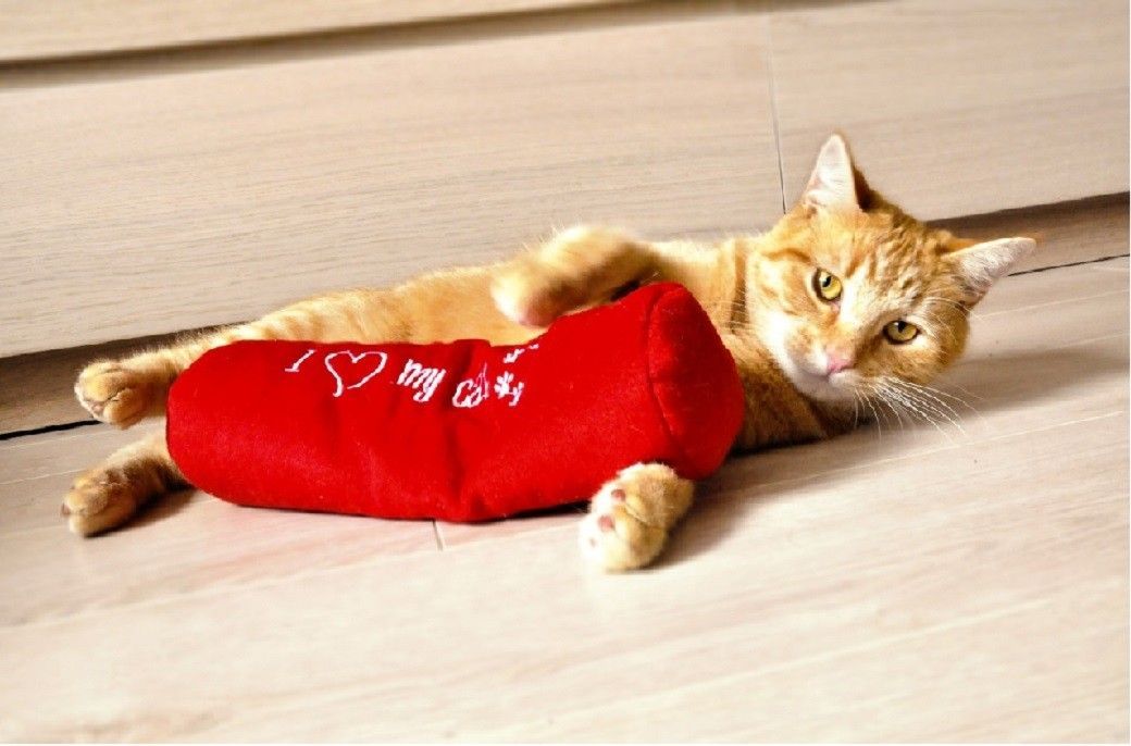 Katzen Plüsch Spielrolle "I love my cat" rot