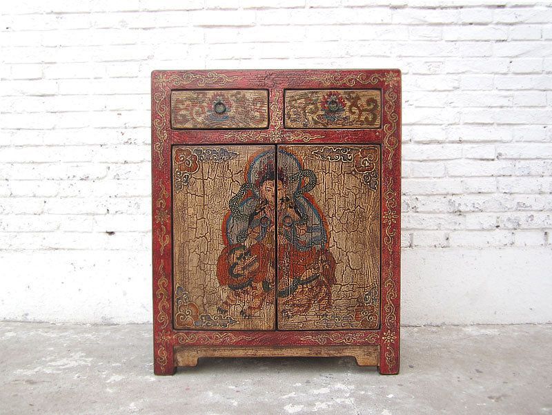 Katzen Toilette in Kommode Tibet antike Bemalung Eingang rechts China