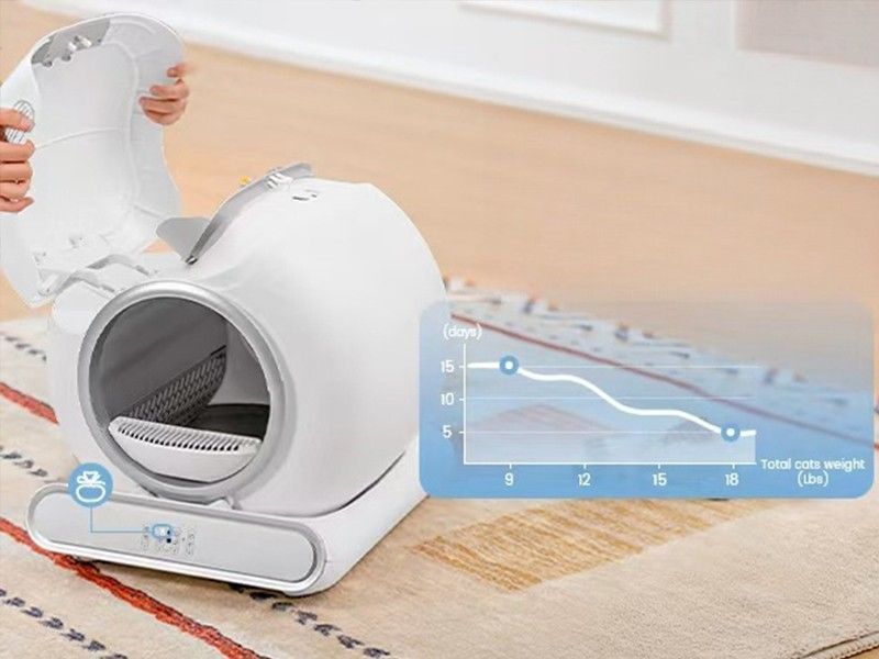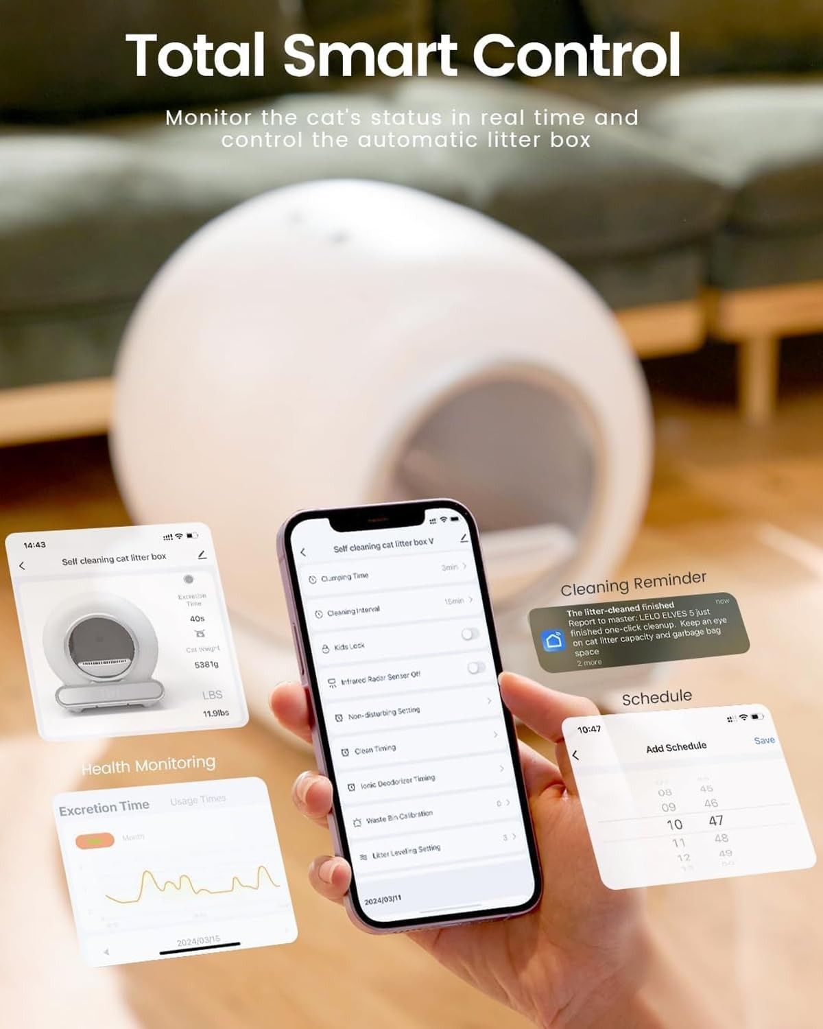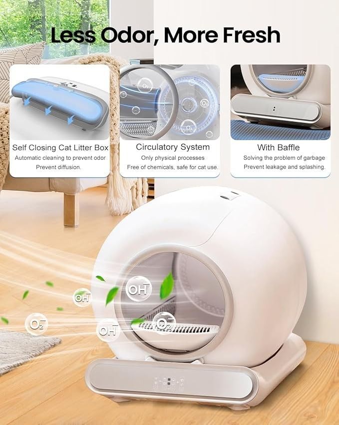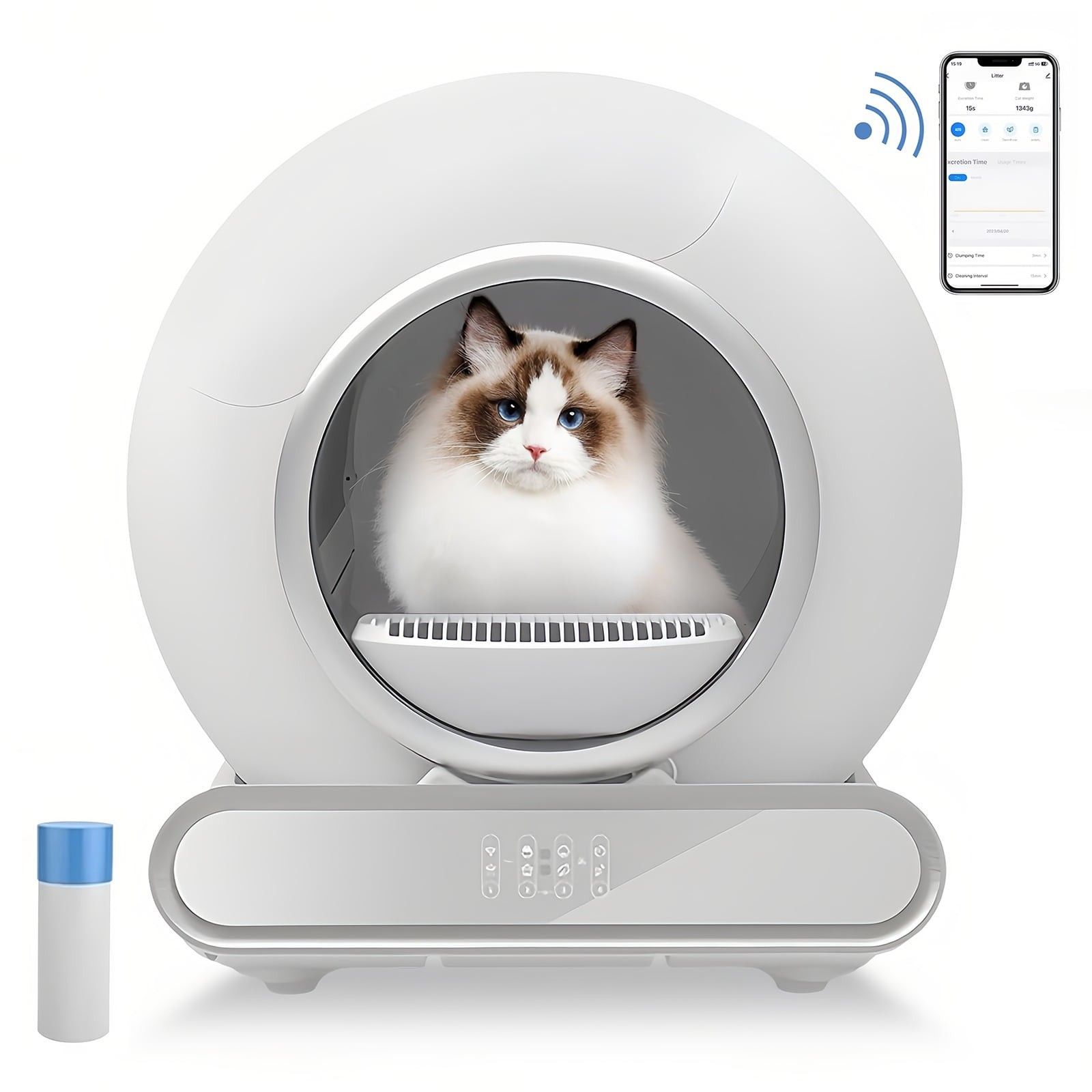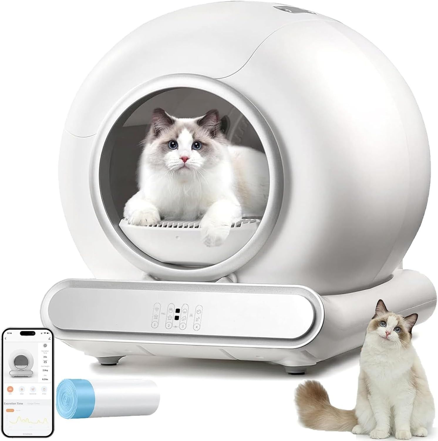 Katzenecktoilette Selbstreinigend Extra 65L Abnehmbare Sandkontrollbox App-Steuerung