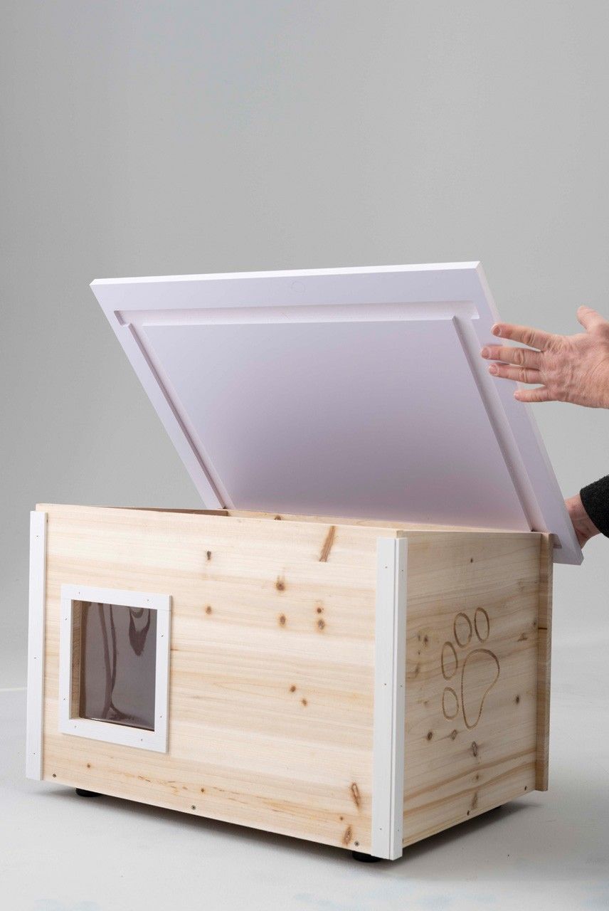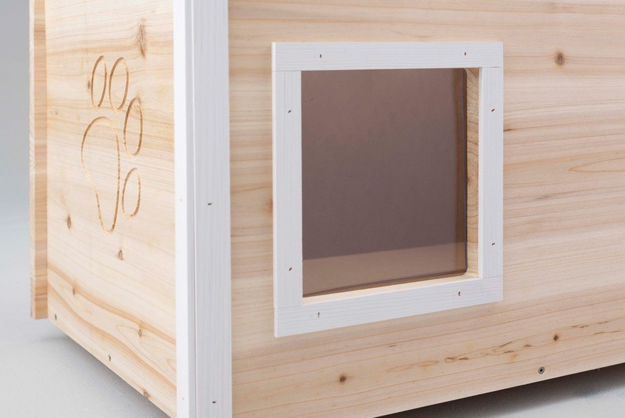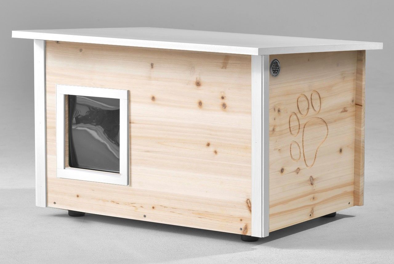 Outdoor Katzenhütte aus Holz mit Isolierung und Thermovorhang
