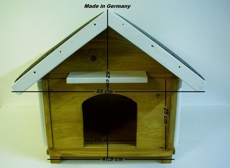 Katzenhaus wetterfest für den Aussenbereich. Auch für Kleintiere wie Kanninchen oder Meerschweinchen gut geeignet. Das Haus ist mit einem wetterfesten Anstrich versehen und für den Aussenbereich vorgesehen.Der Boden ist mit Styropor isoliert und mit PVC ausgelegt.Er läßt sich somit leicht reinigen.