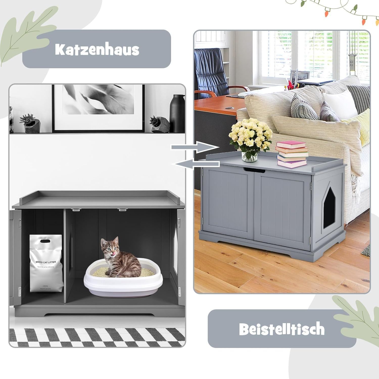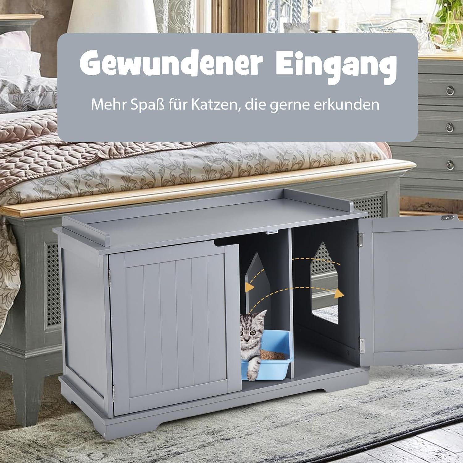 Katzenhaus Katzenhöhle mit Bett, geschlossene Katzentoilette mit Eingang, Haustierbox