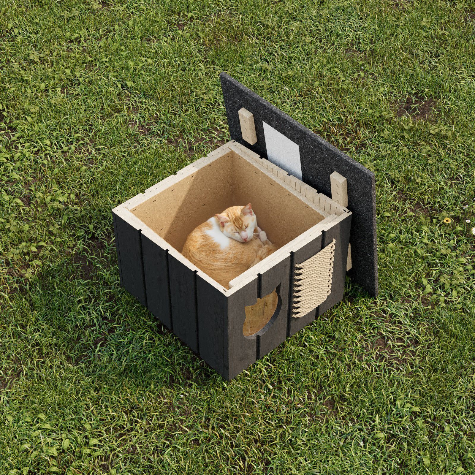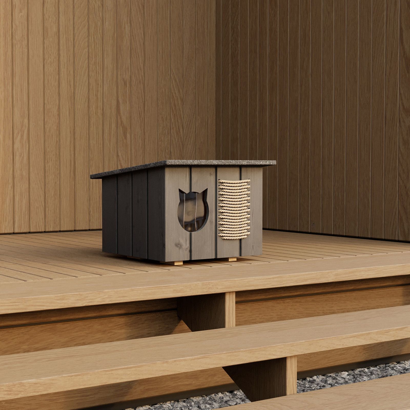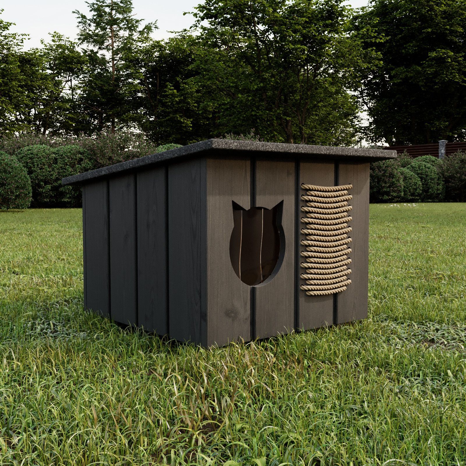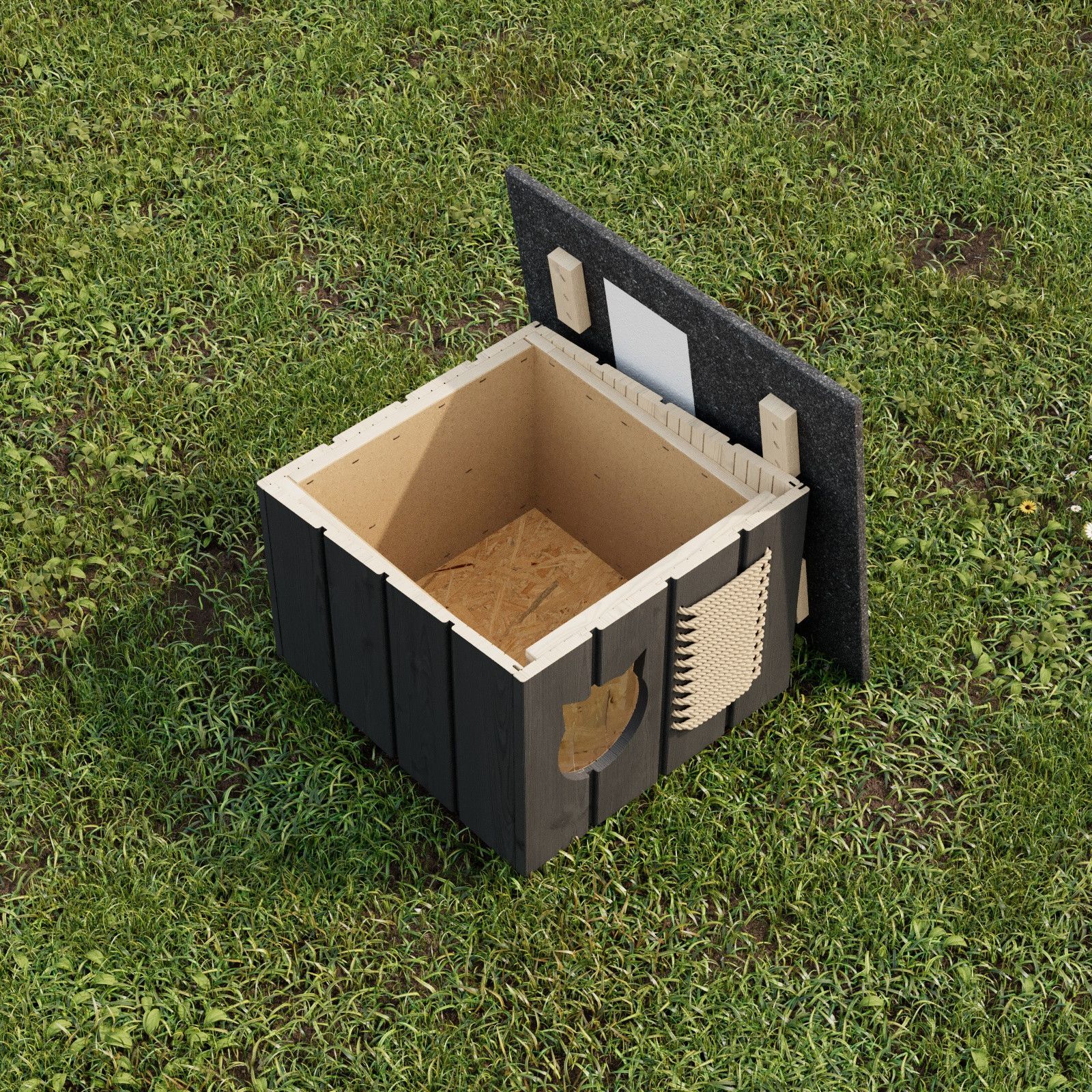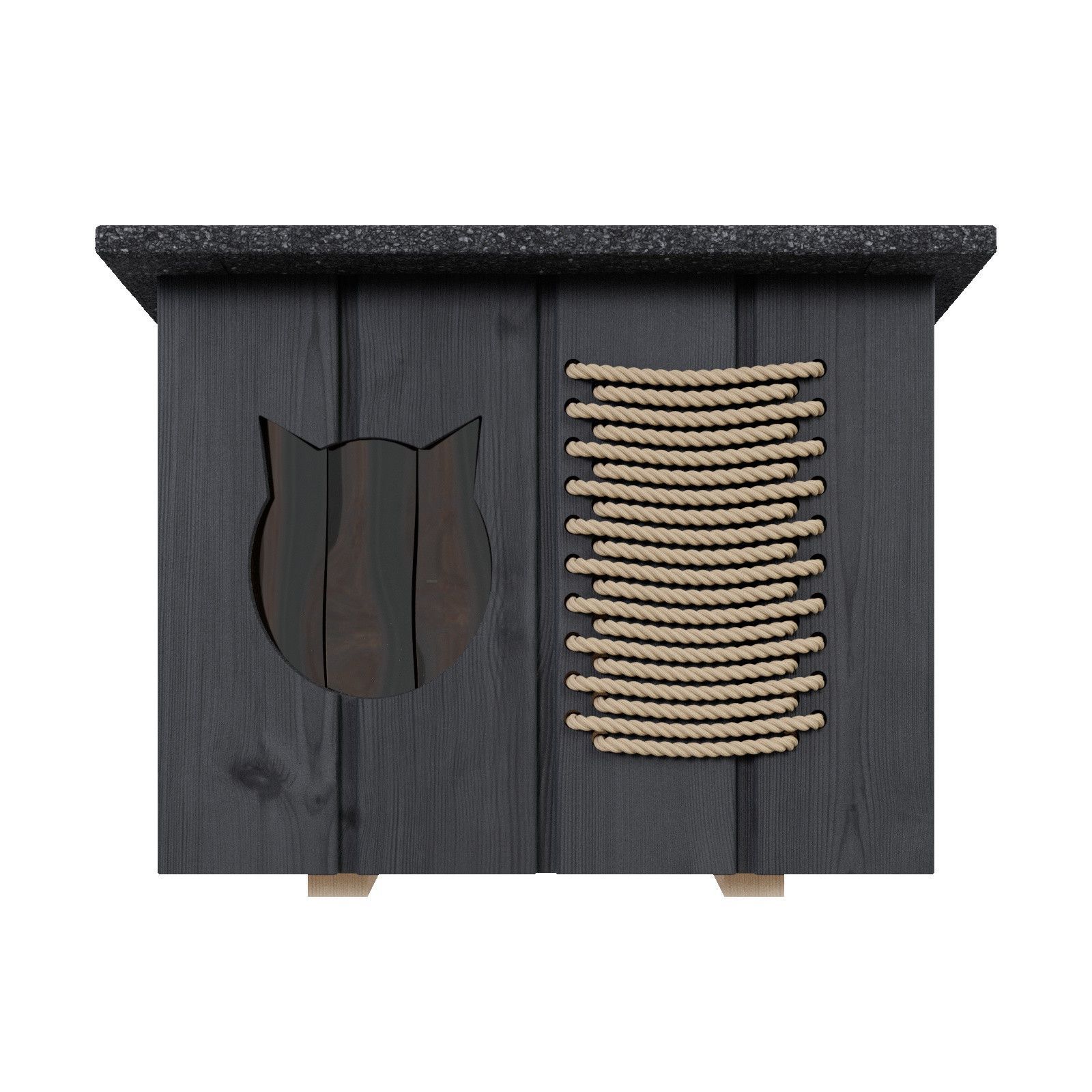 QLS Katzenhaus outdoor Hütte Grau Höhle draußen winterfest isoliert Holz 56x47cm 8659