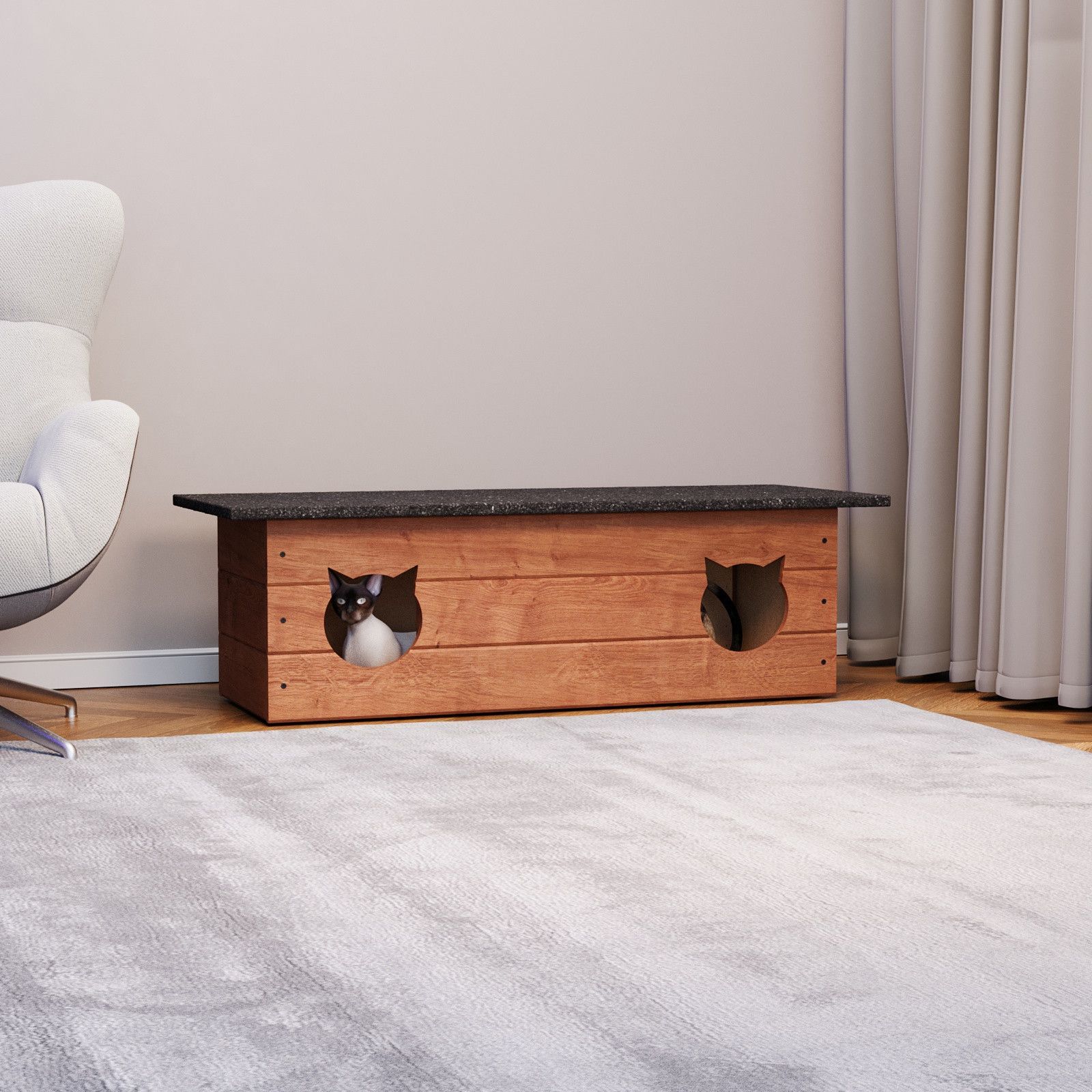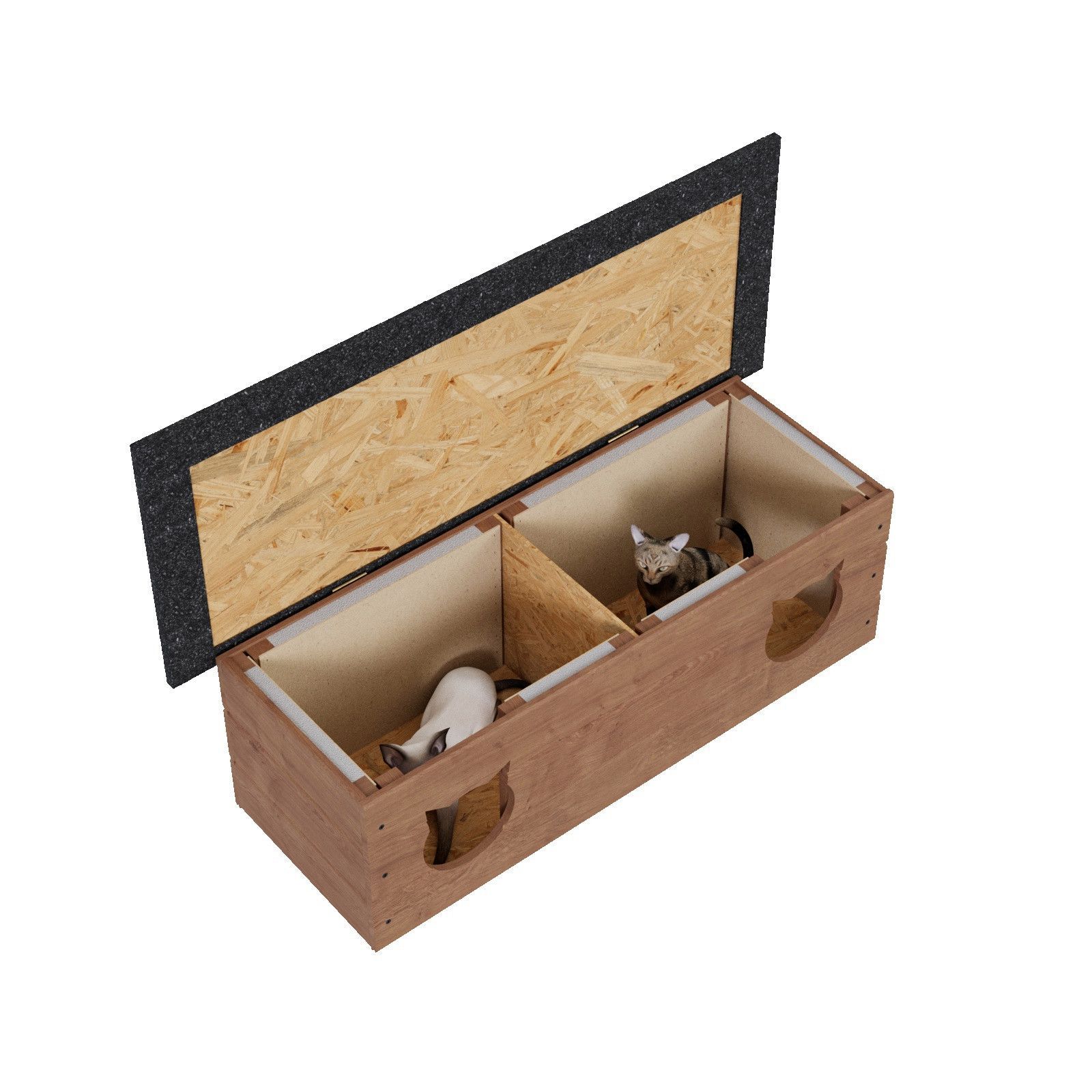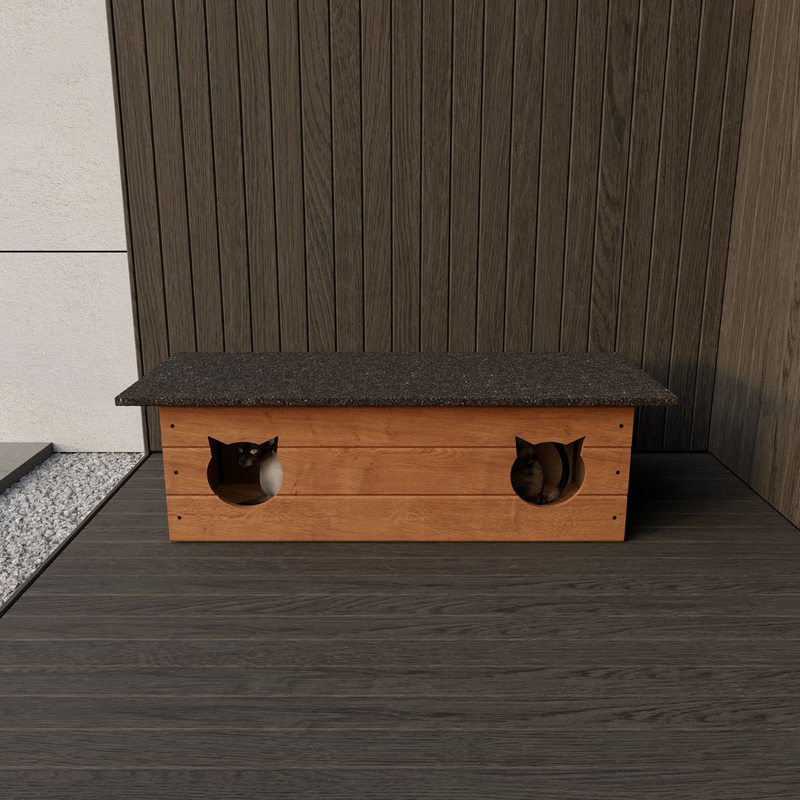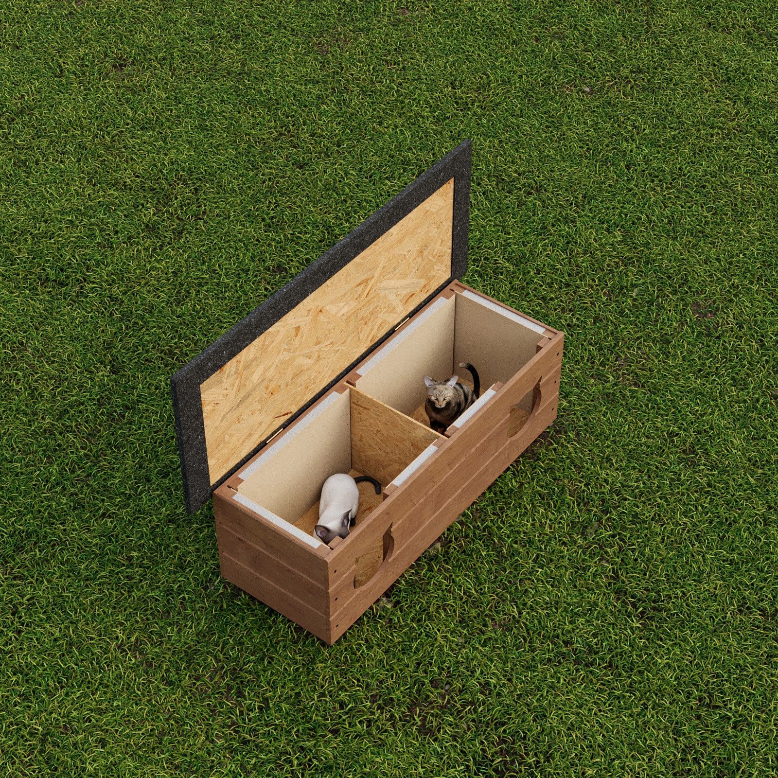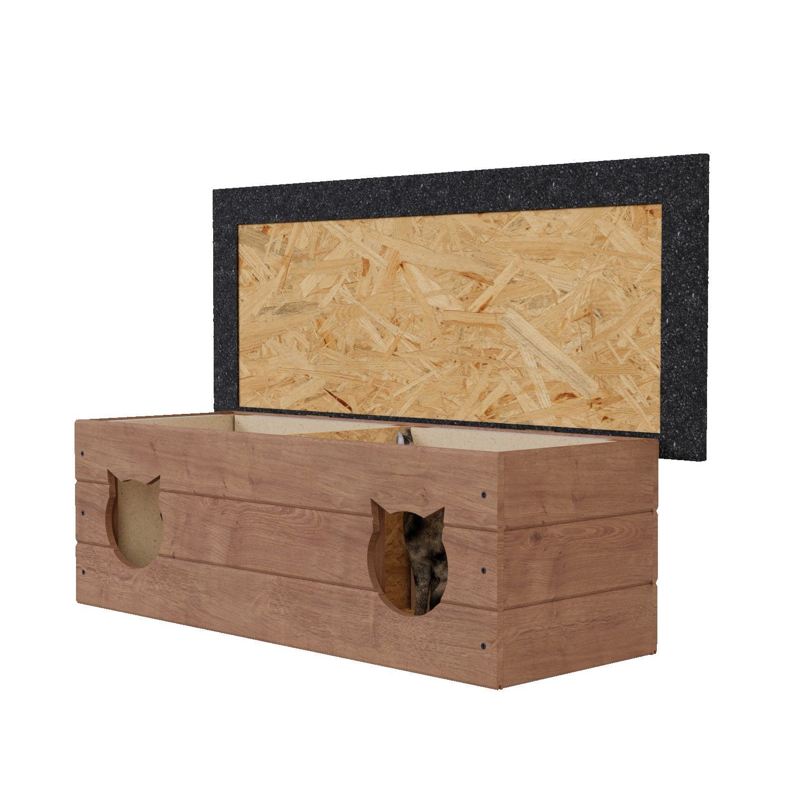 QLS Katzenhaus XL Outdoor 110x40 cm Katzenhütte Höhle draußen wetterfest Holz 8581
