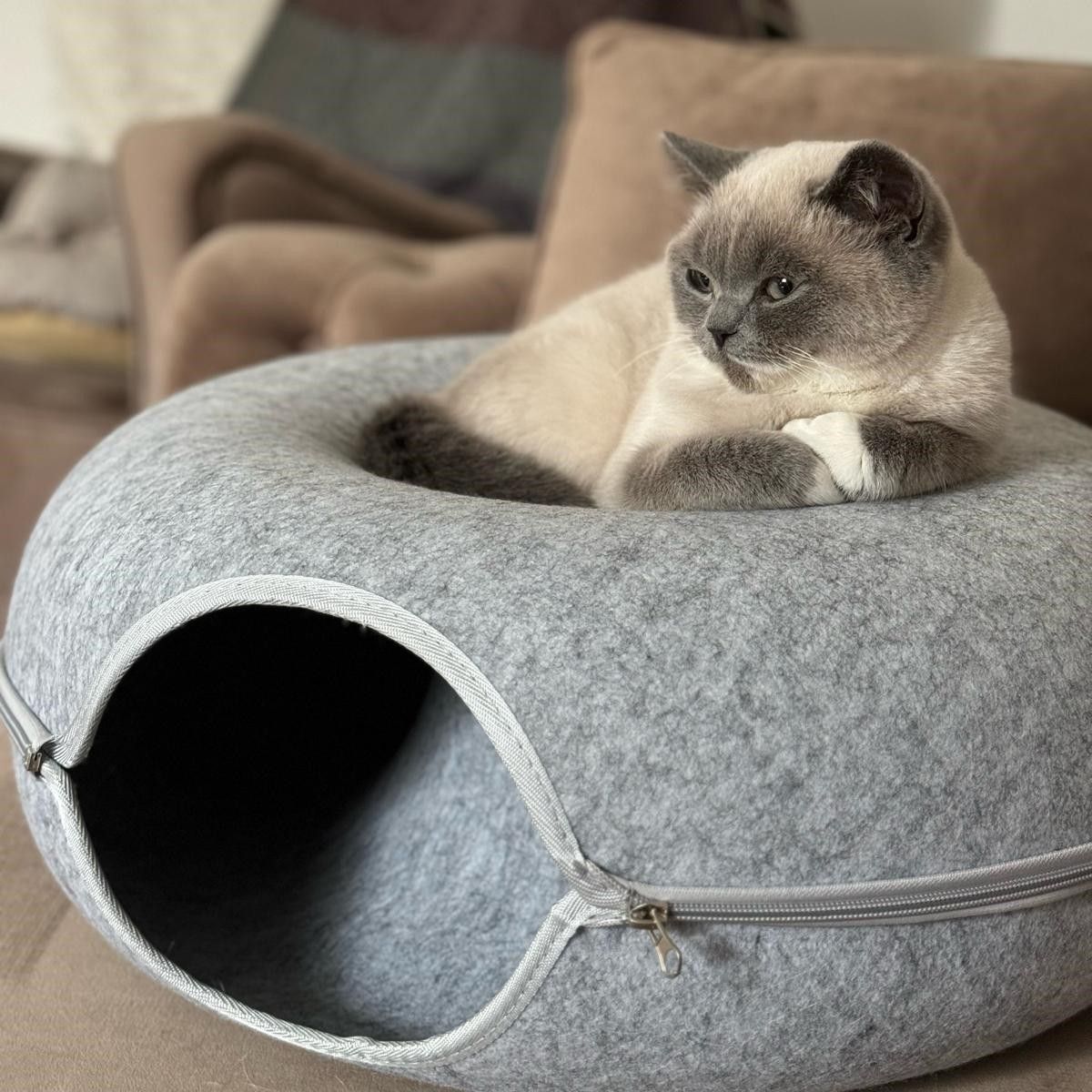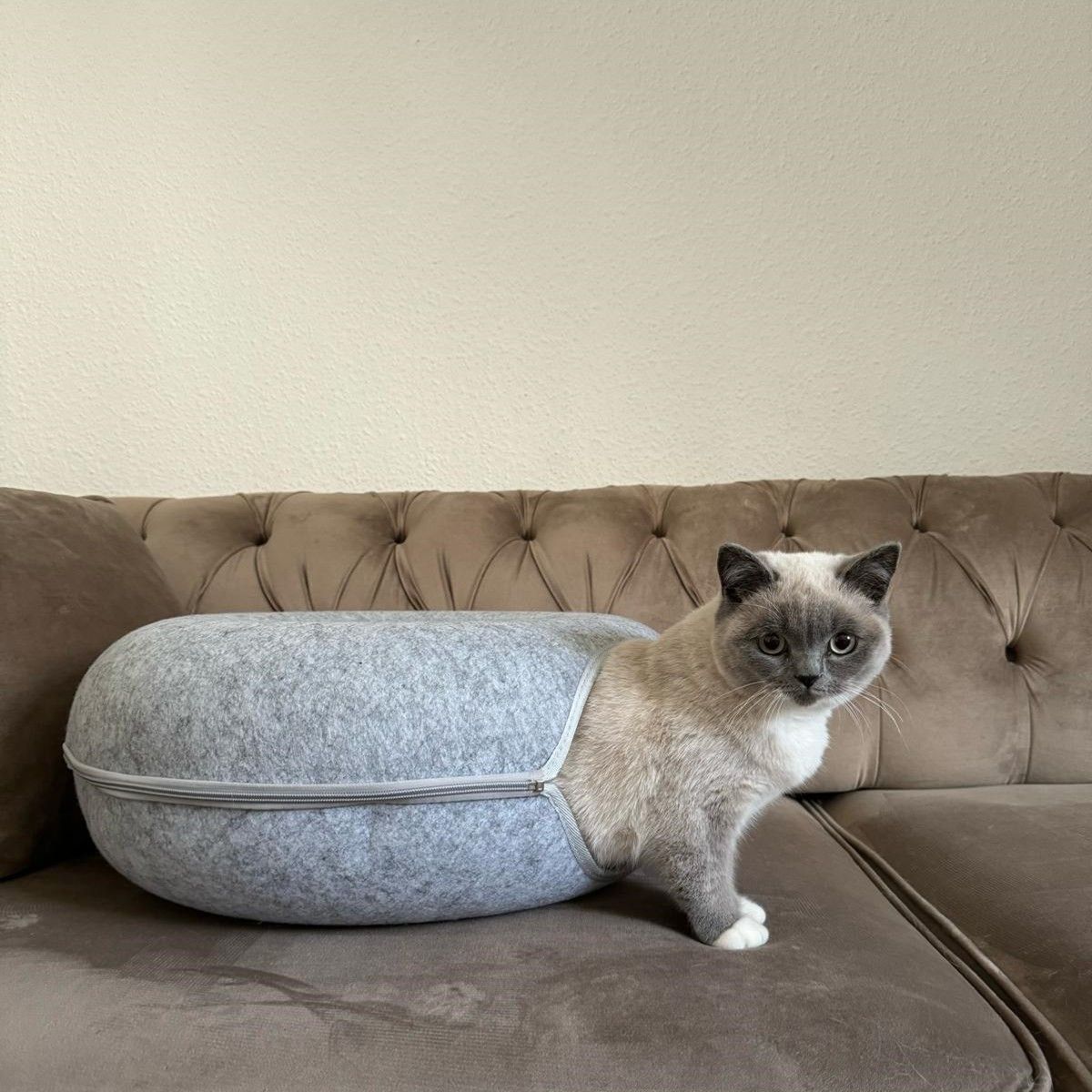 Katzenhöhle Katzenbett Tierhöhle mit Reißverschluss Katzentunnel Rund Filz 50x50x20