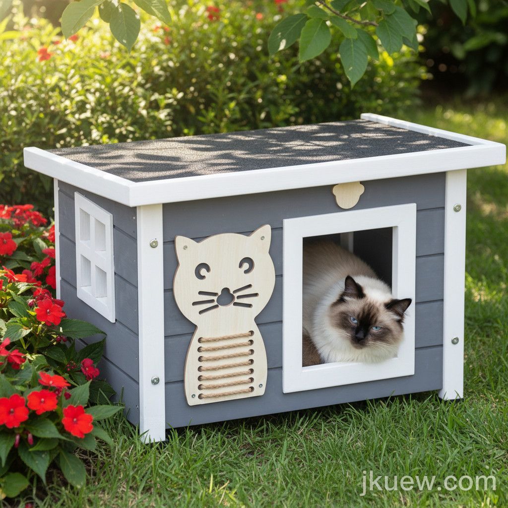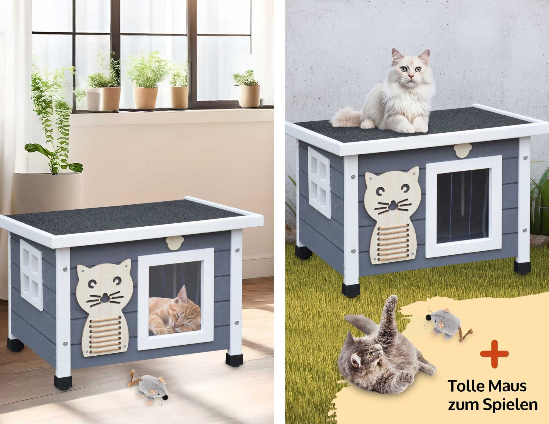 Katzenhütte Katzenhaus Katzenbox Katzenvilla Katzenhöhle Grau Weiss