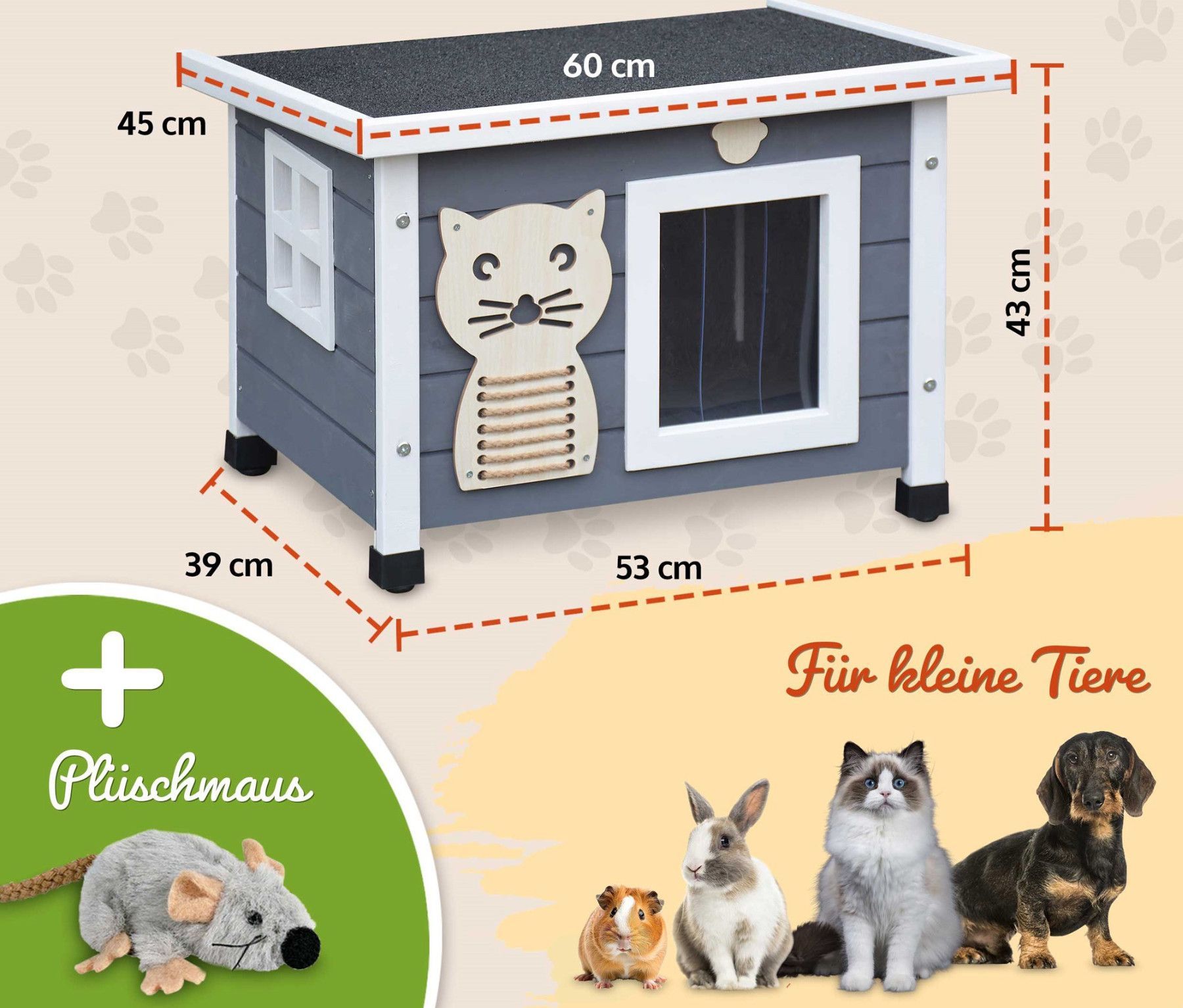 53 x 43 x 39 cm (B x H x T) Dach: 60 x 45 cm