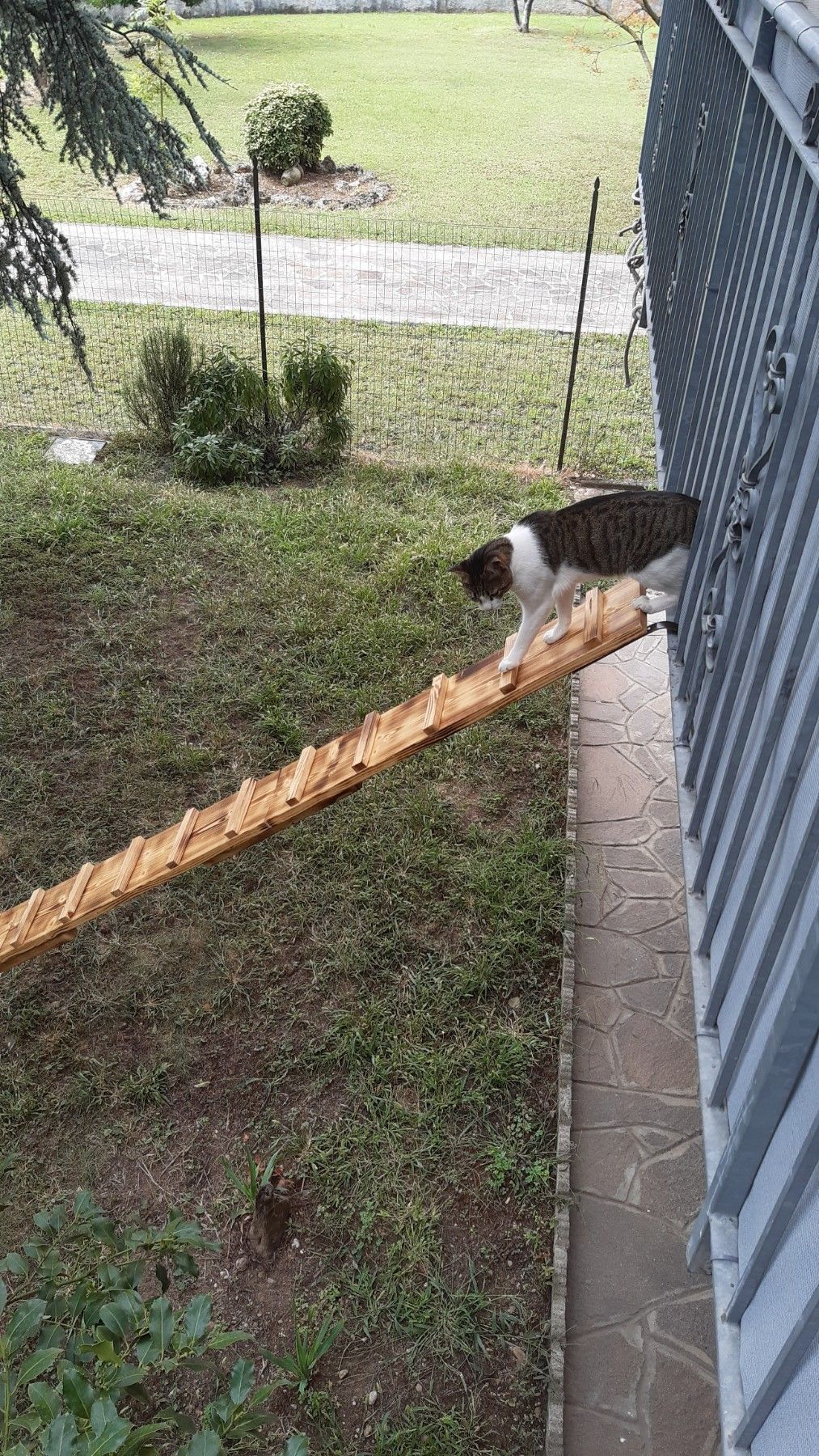QLS Katzenleiter Katzentreppe Geflammt Katzenstufe für Balkon 6m ohne Befestigung 9950