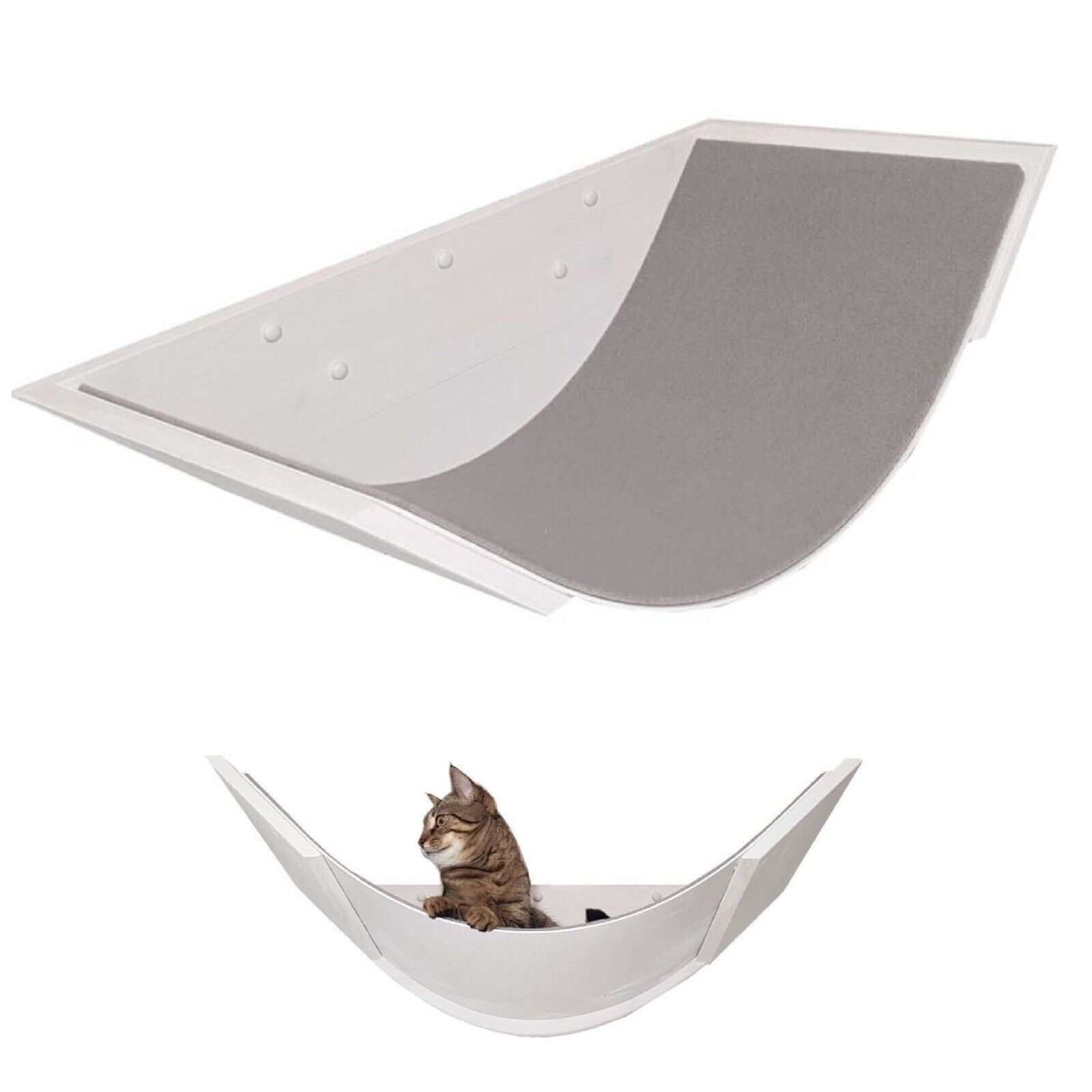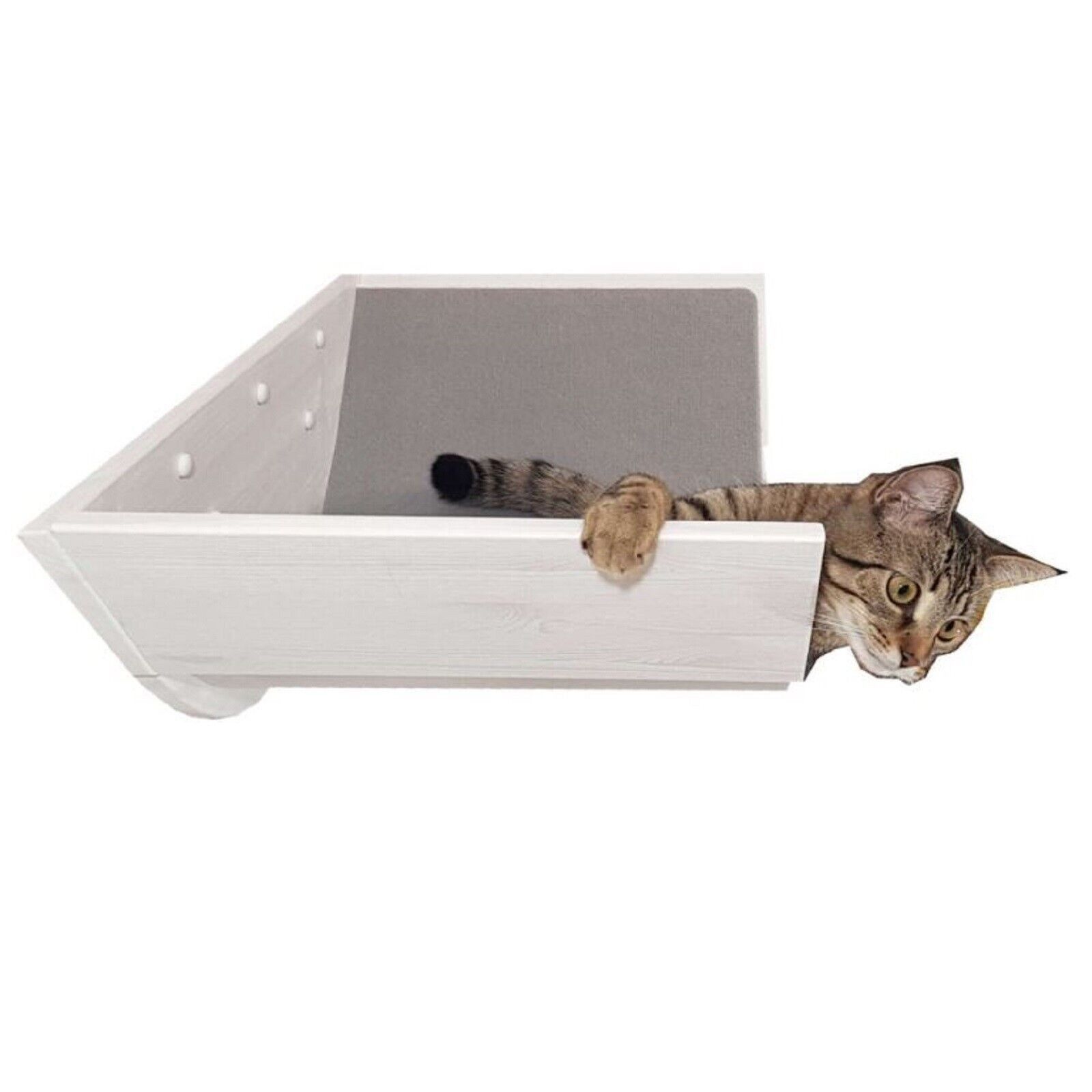 QLS Katzenliege mit Abdeckung 80cm Wandmontage Rutschfest aus Holz Weiß Handmade 10964