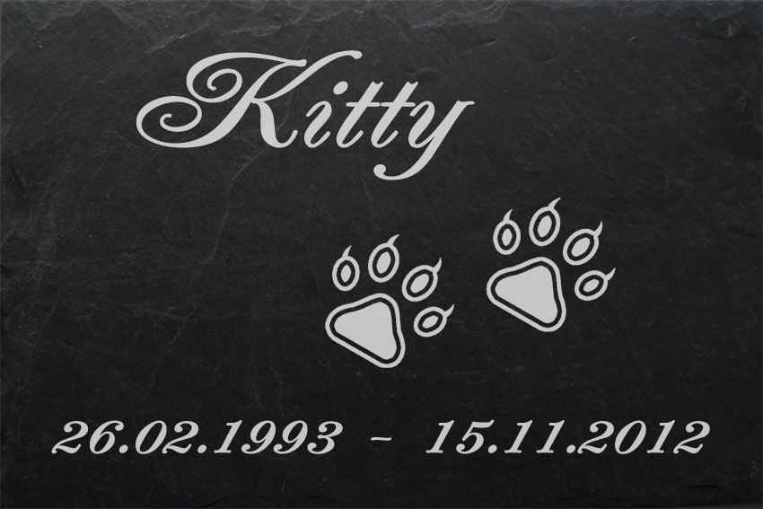 Katzenpfoten -mit Gravur- in Schiefer Tiergrabplatte Grabtafel Grabstein 30x20cm