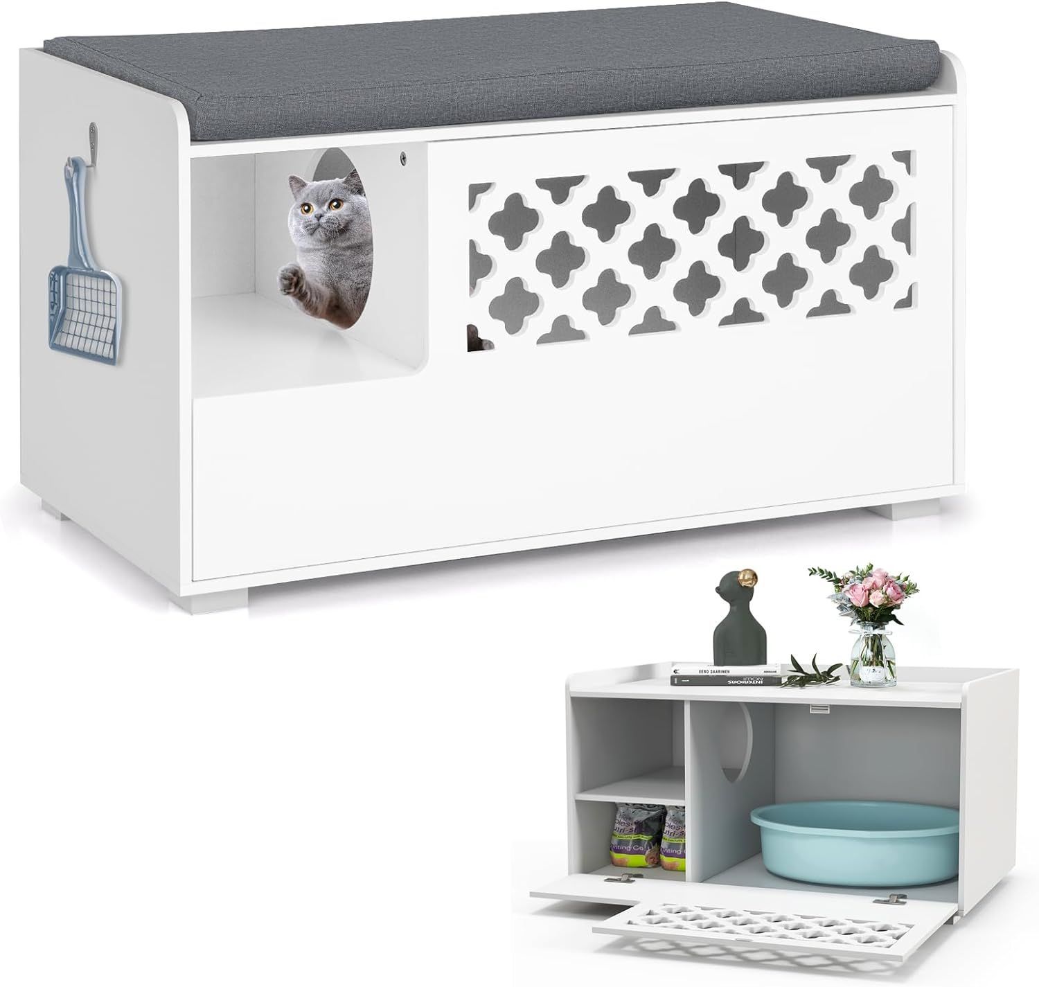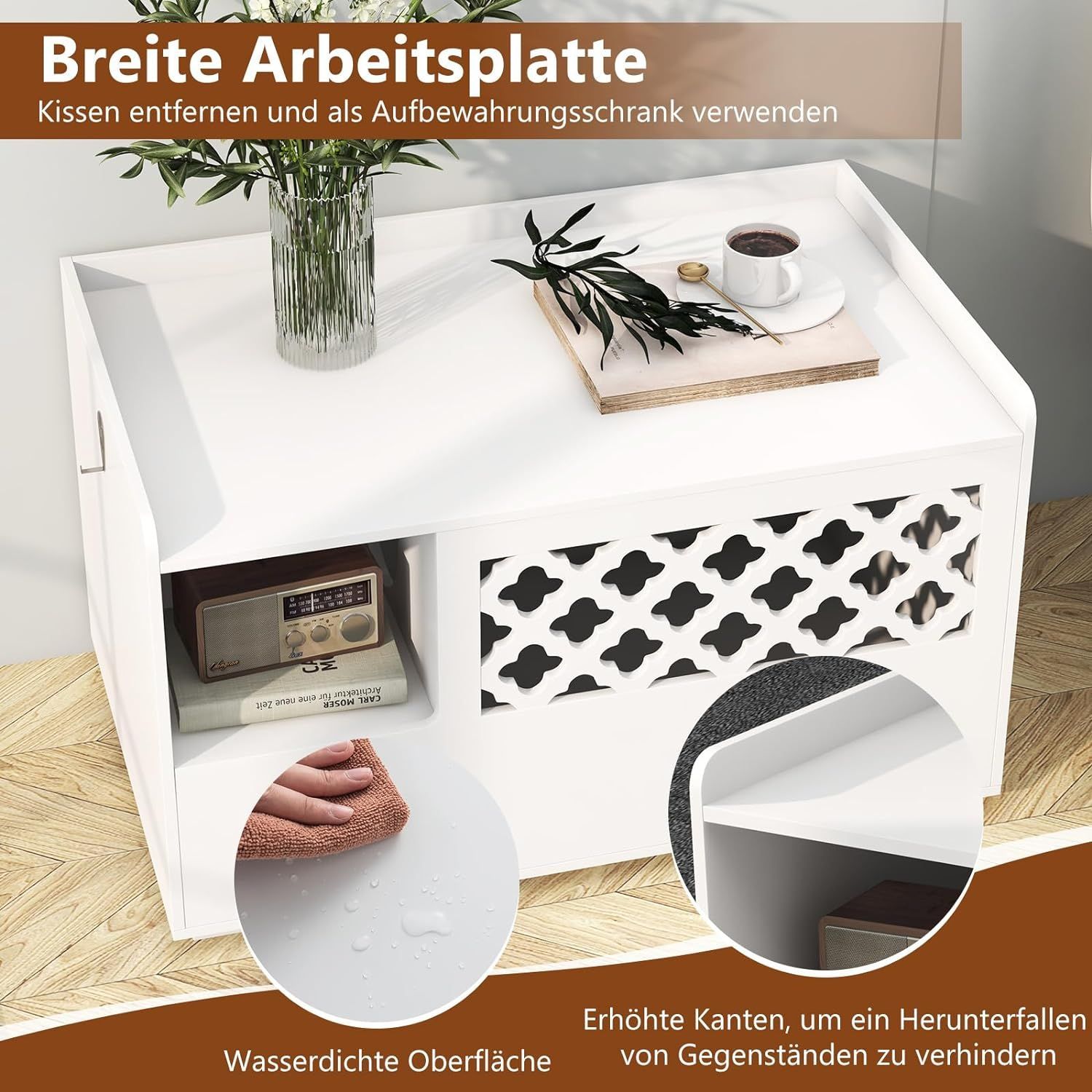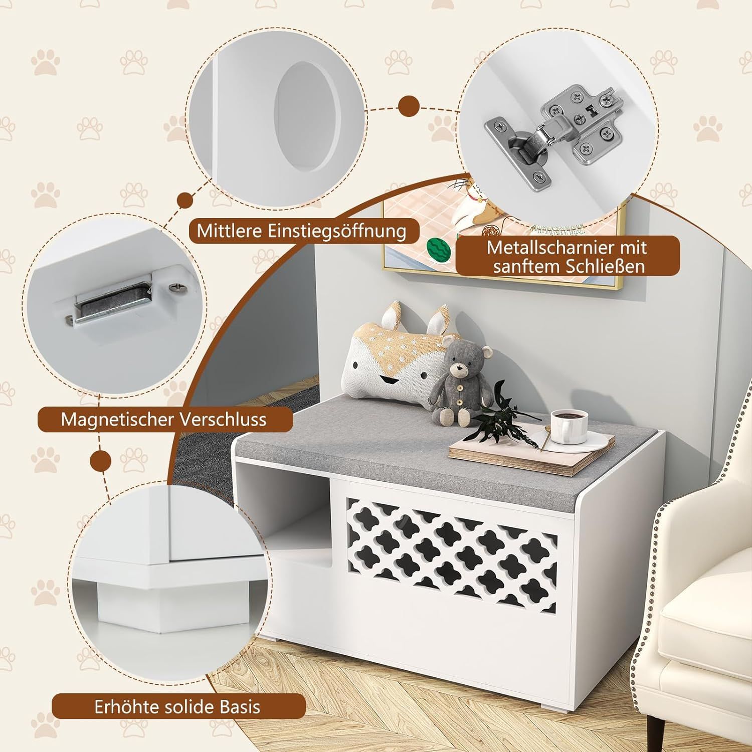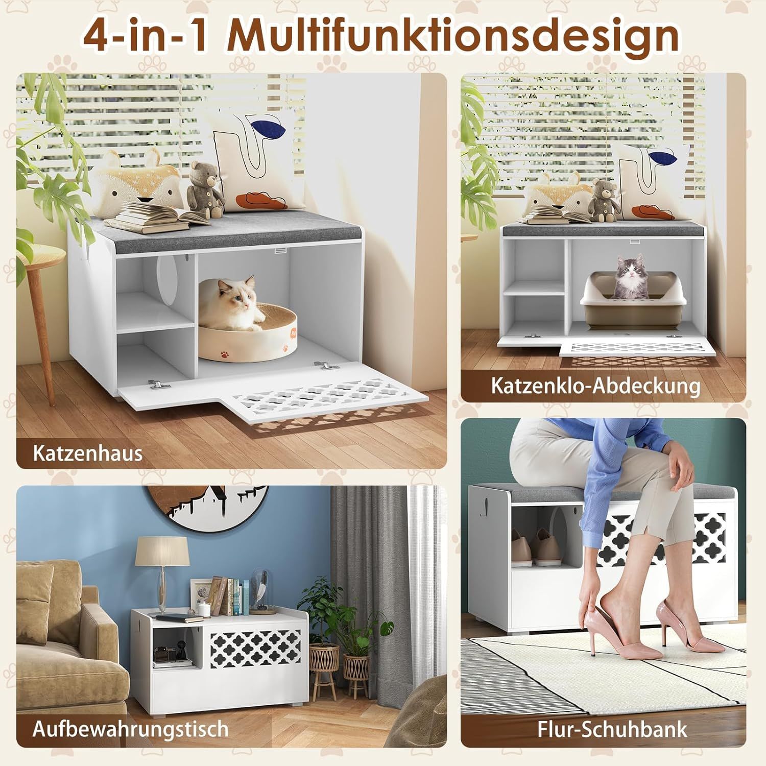 Katzenschrank für Katzentoilette, 4 in 1 Katzenhaus Schuhbank Beistelltisch, Weiß