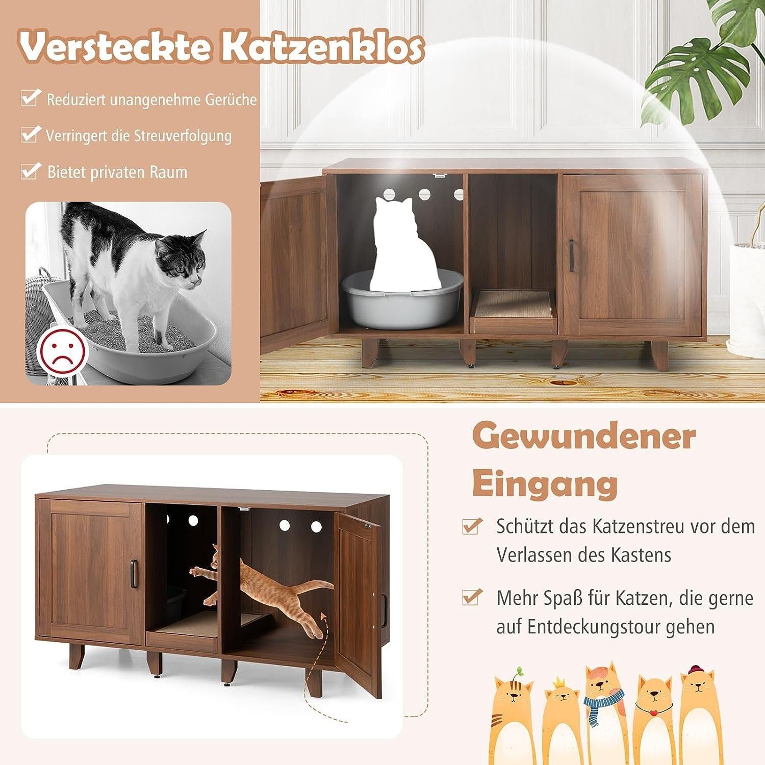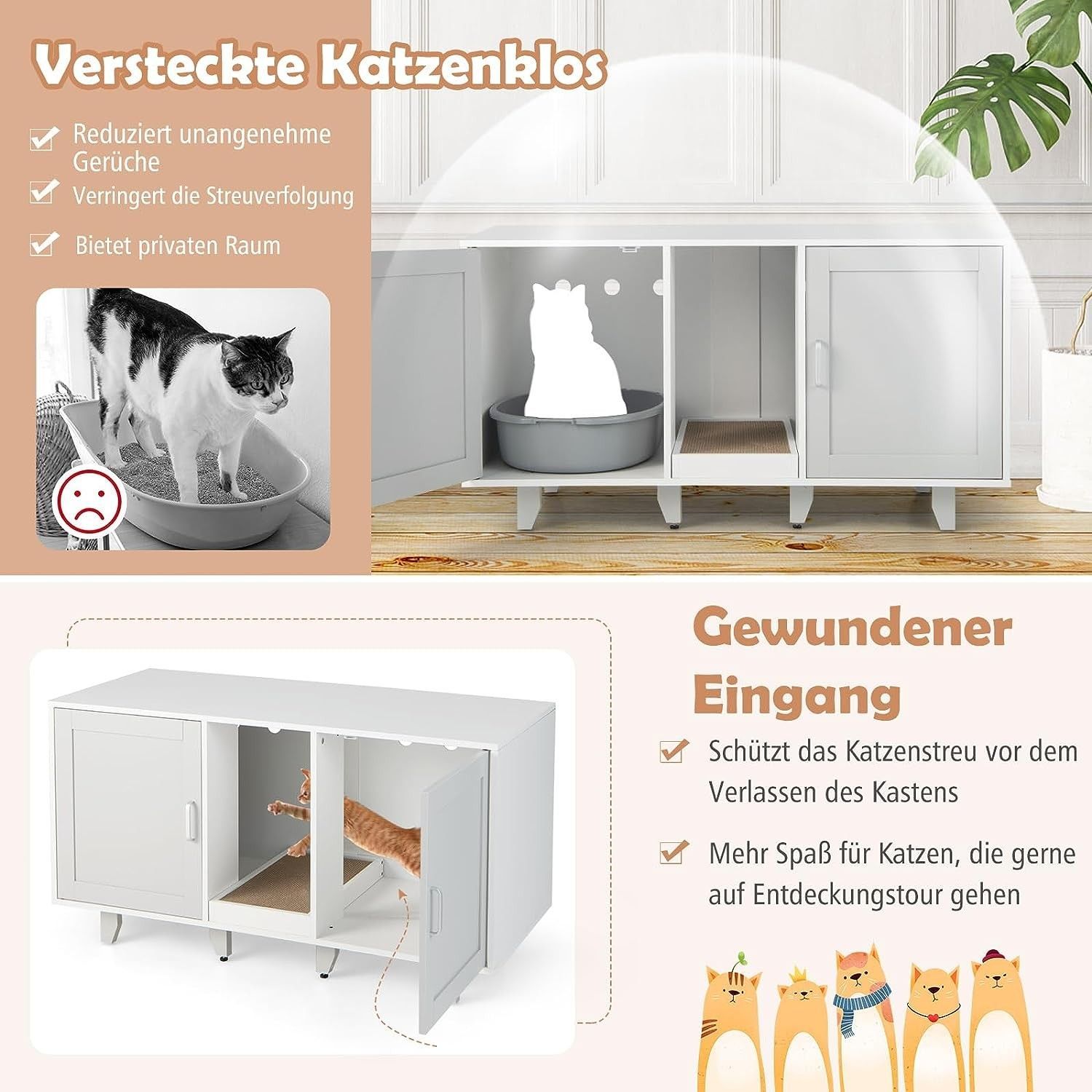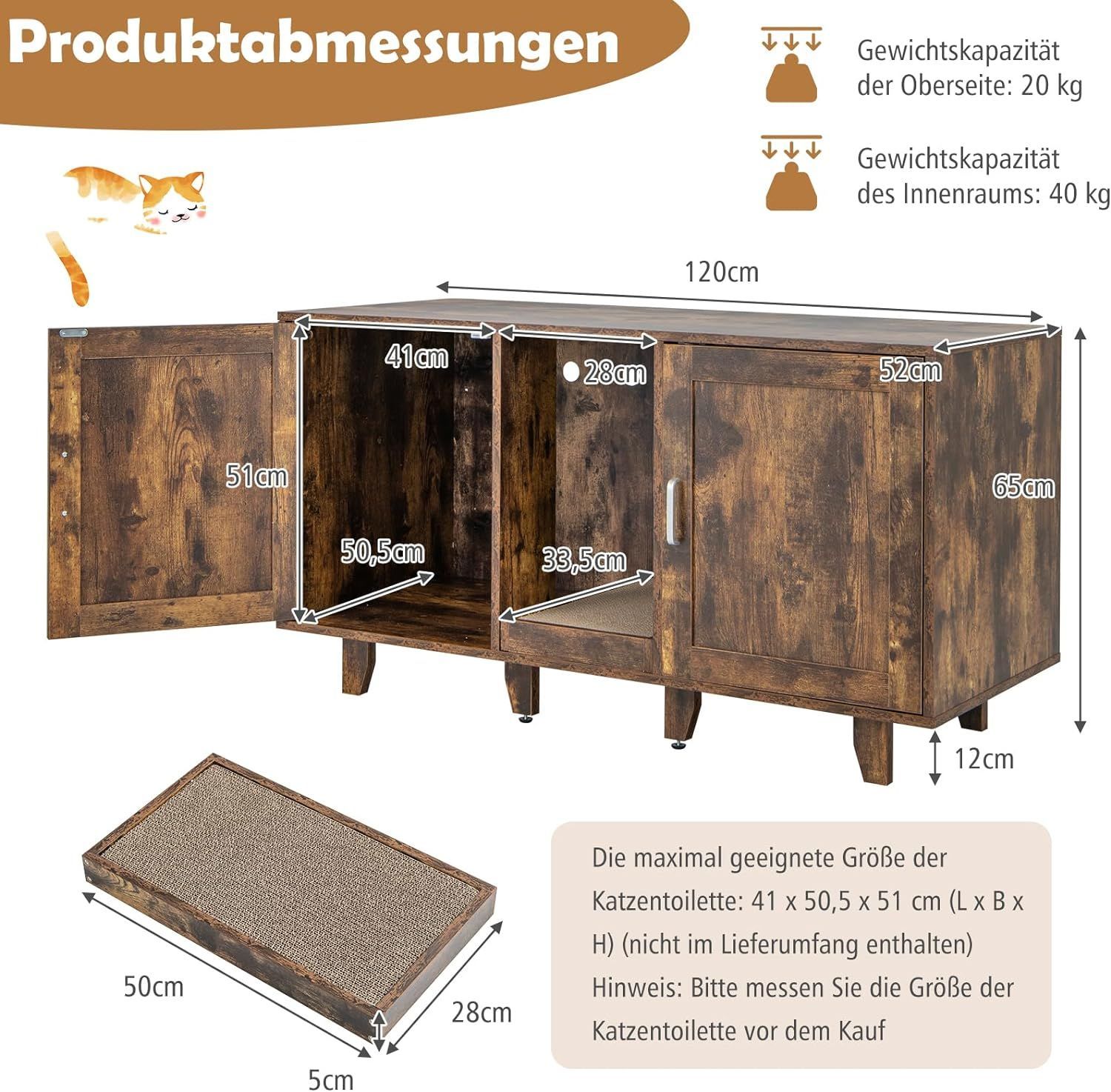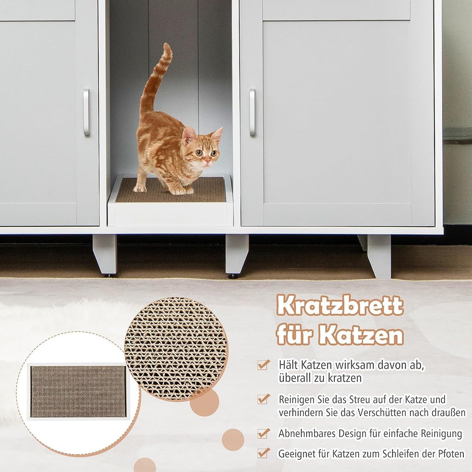 Katzenschrank, Katzenklo mit Eingang & Tür, Katzenklo-Schrank mit Kratzbrett