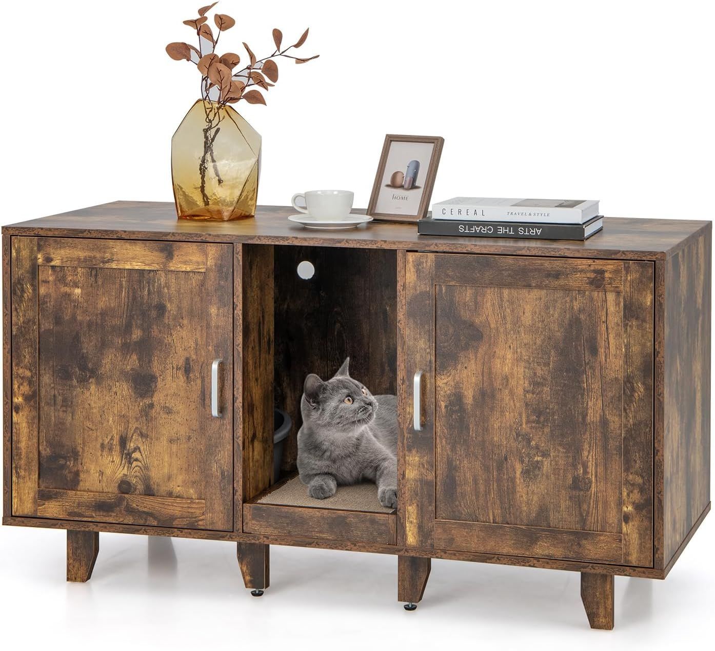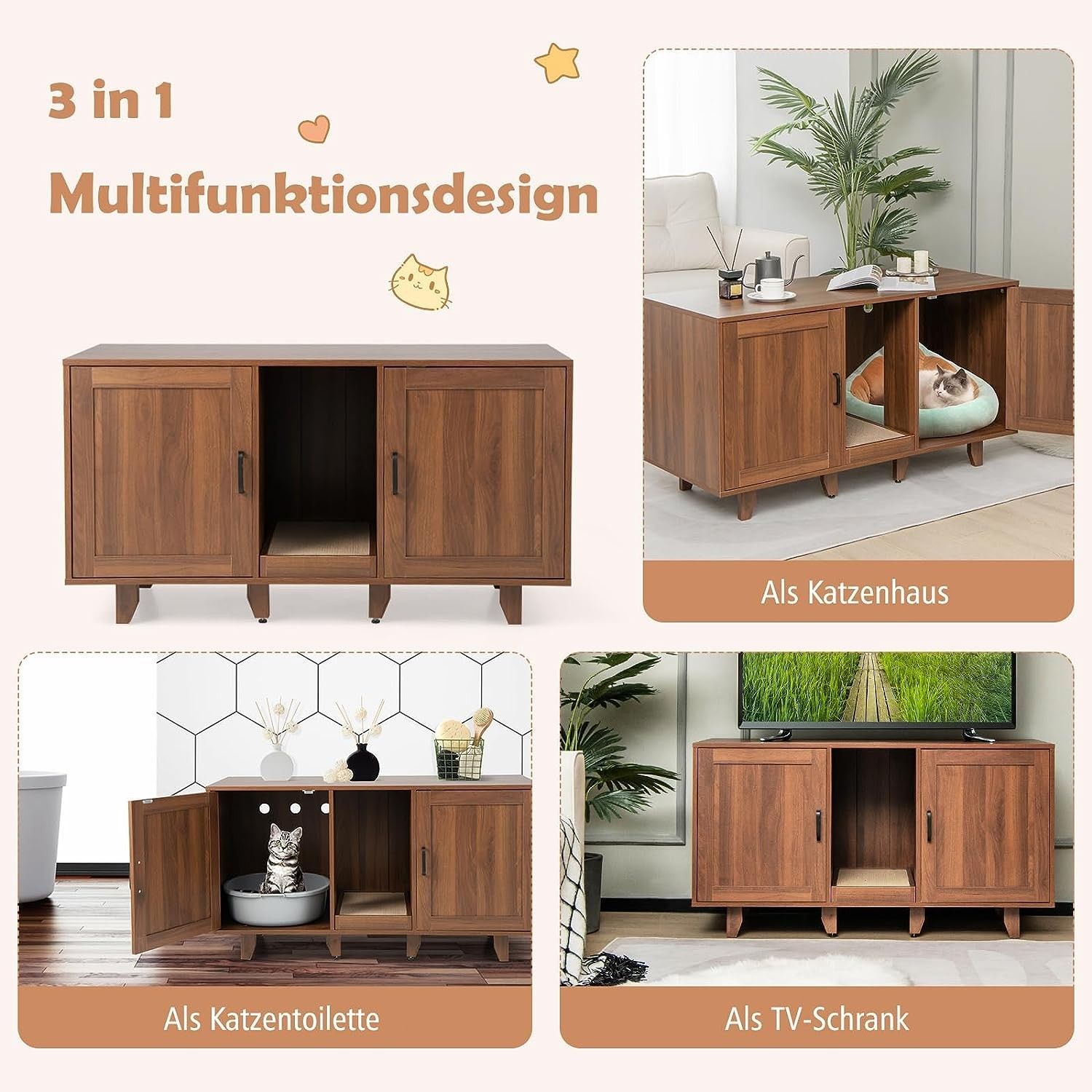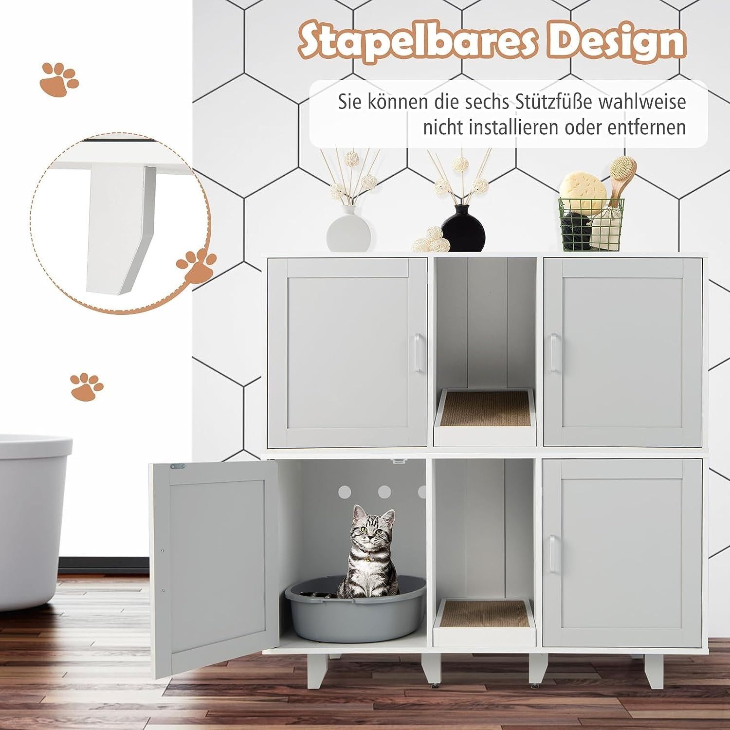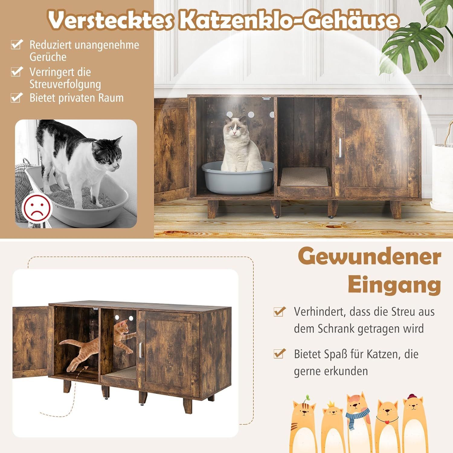 Katzenschrank, Katzenklo mit Eingang & Tür, Katzenklo-Schrank mit Kratzbrett