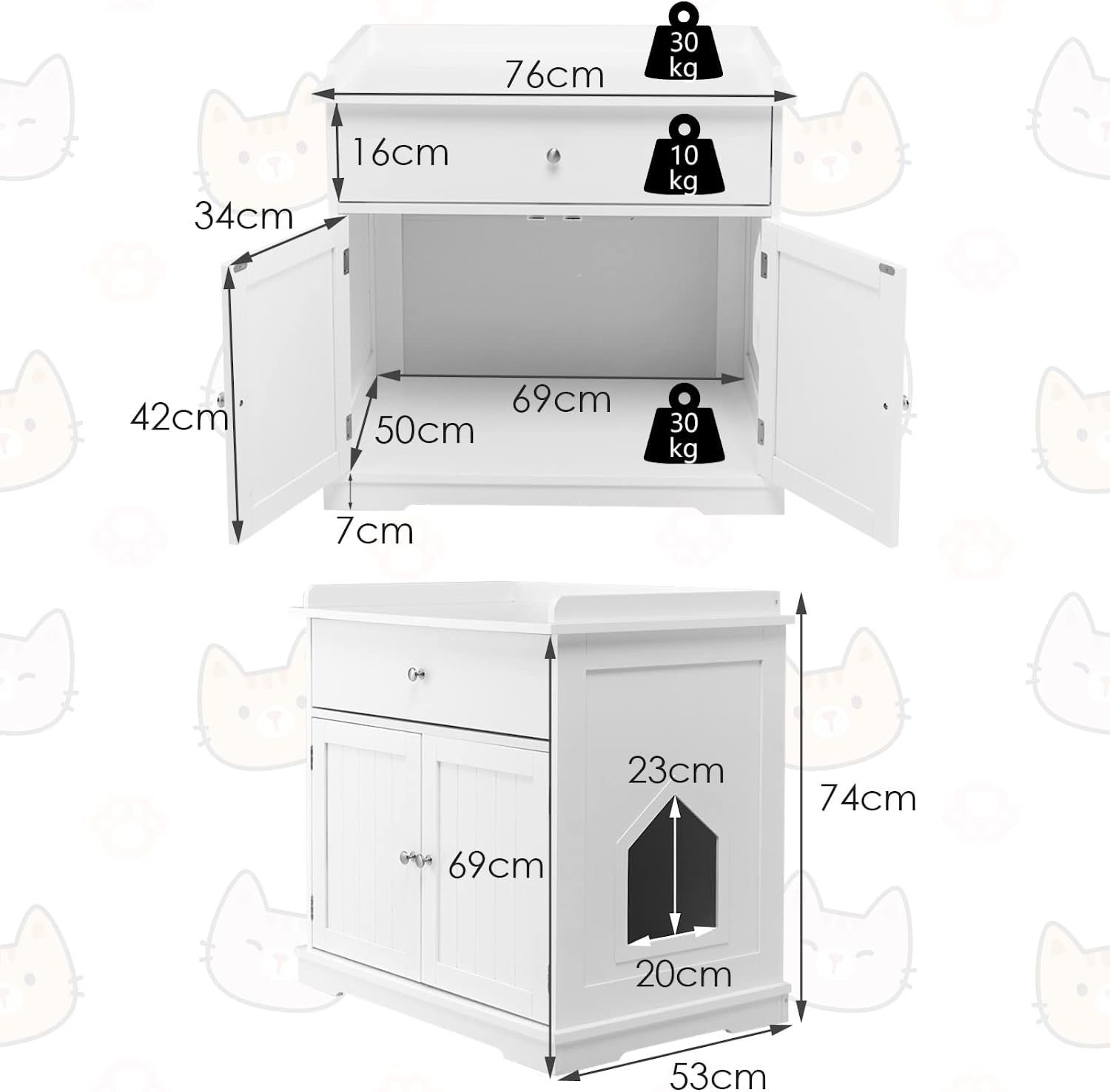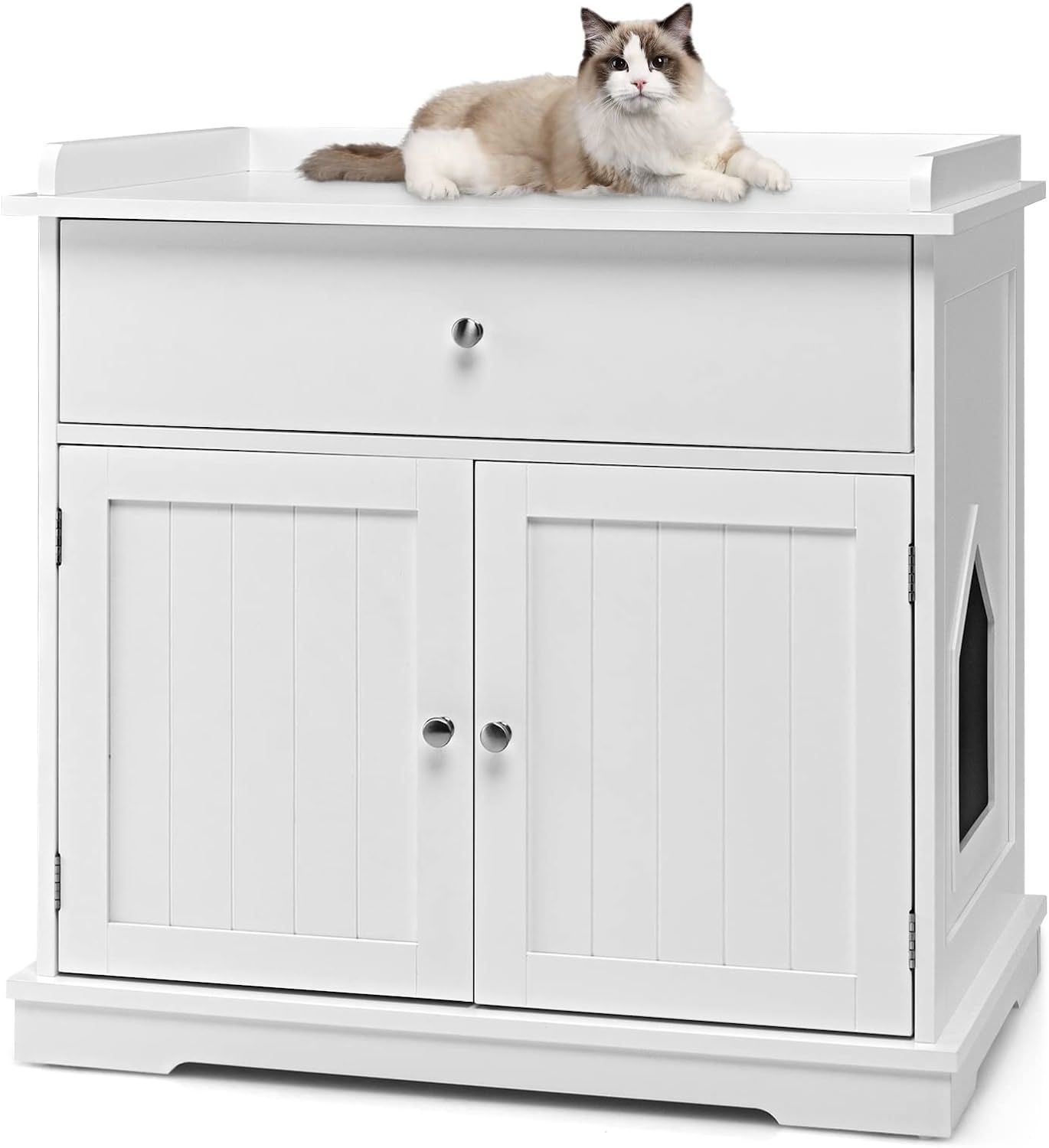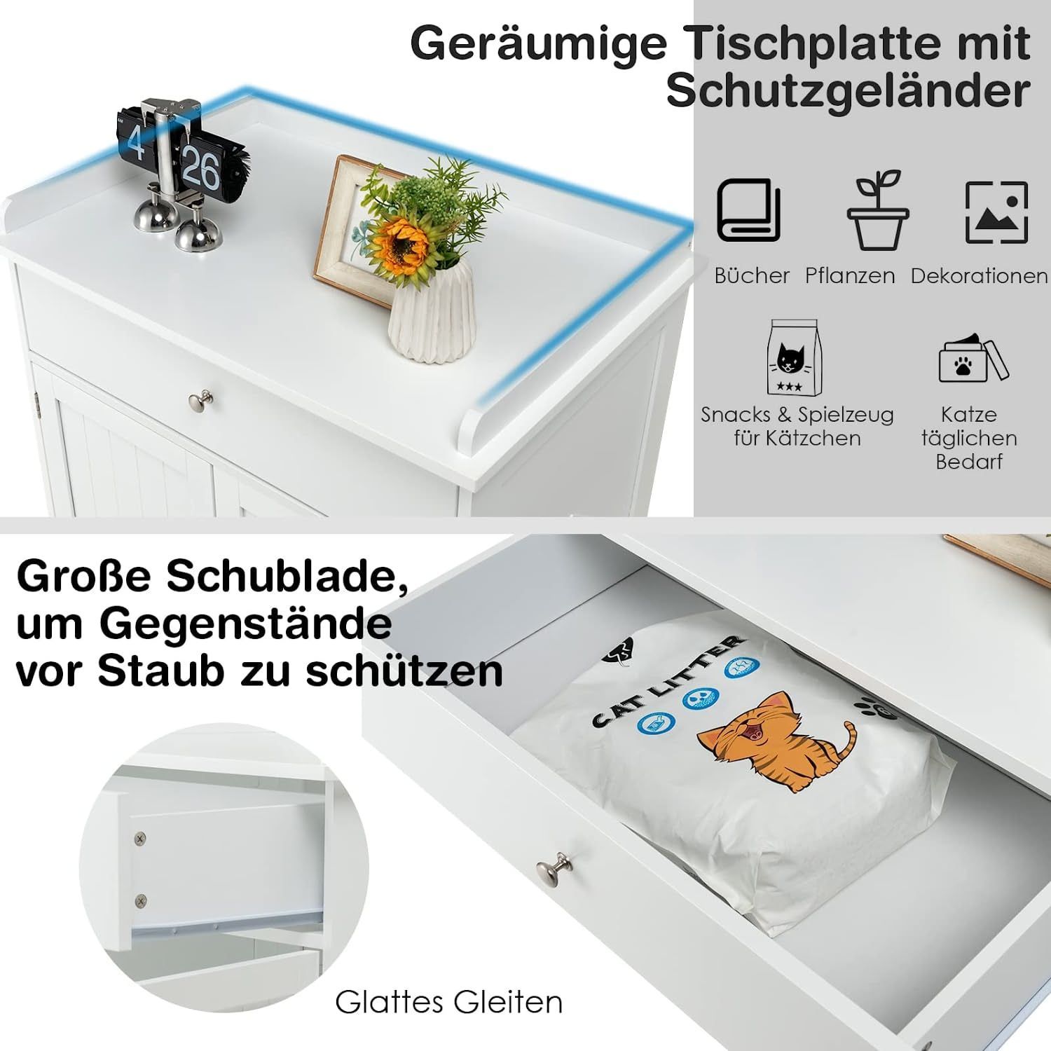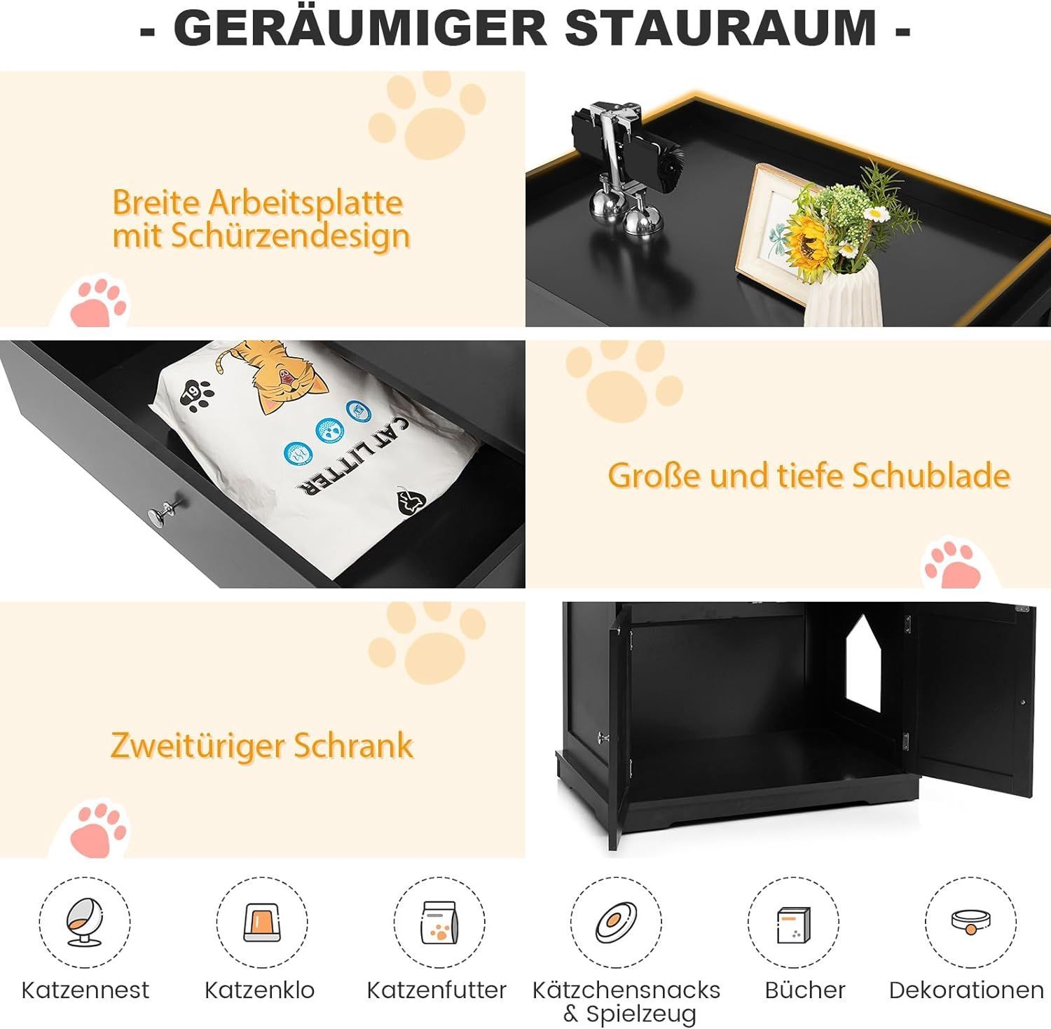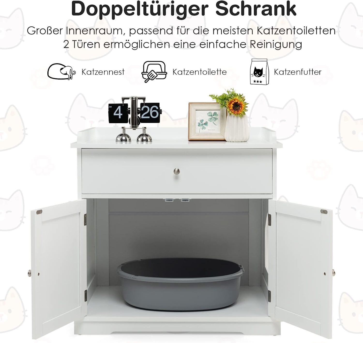 Katzenschrank mit Schublade & Tür & Eingang, 3-in-1 Katzenhaus Katzentoilette