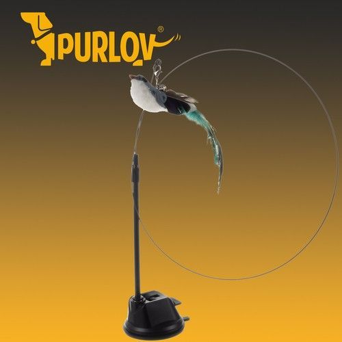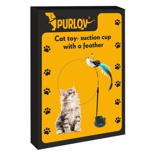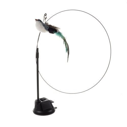 Katzenspielzeug Angelrute mit Saugnapf Vogel mit Federn & Glocke interaktiv