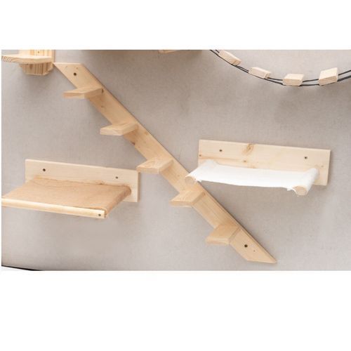 QLS Katzenstufen Katzenleiter Katzentreppe Wandmontage Kletterwand 5 Stufen 1 m Holz 9960