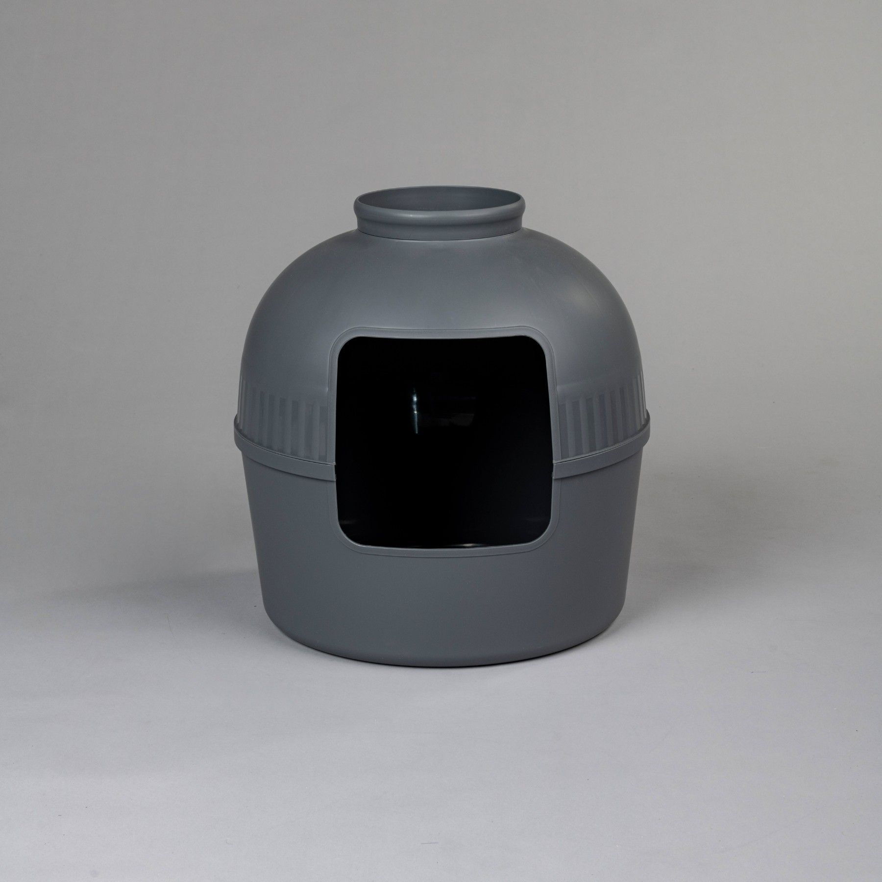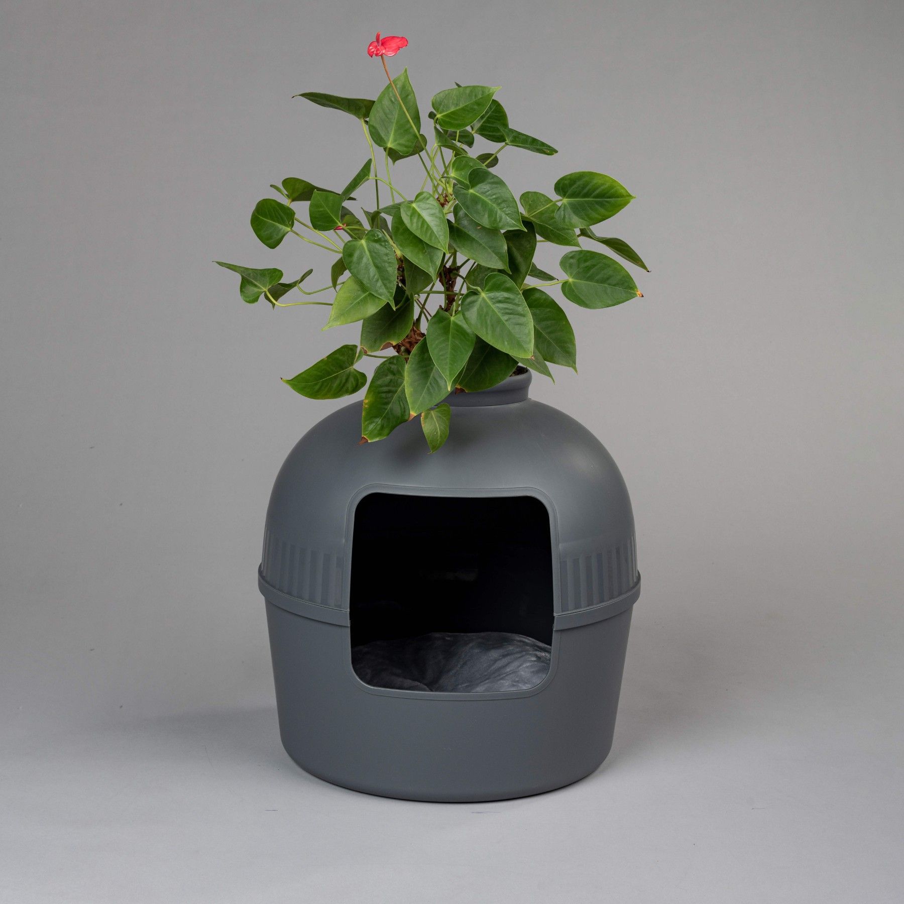Katzentoilette Flower XXL grau unsichtbares Katzenklo mit Deckel 51Øx55cm