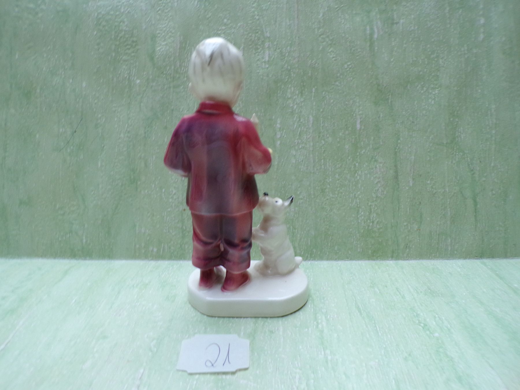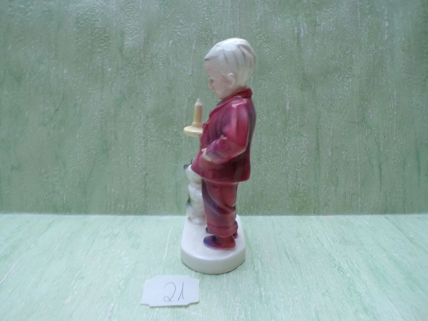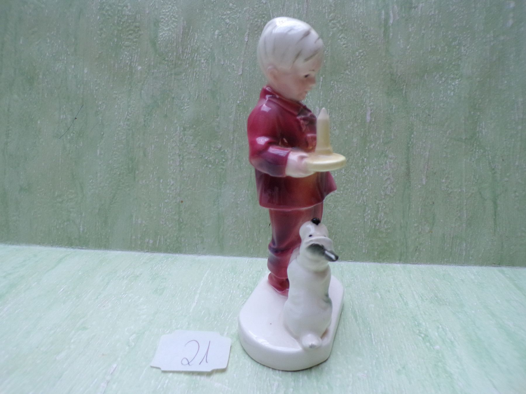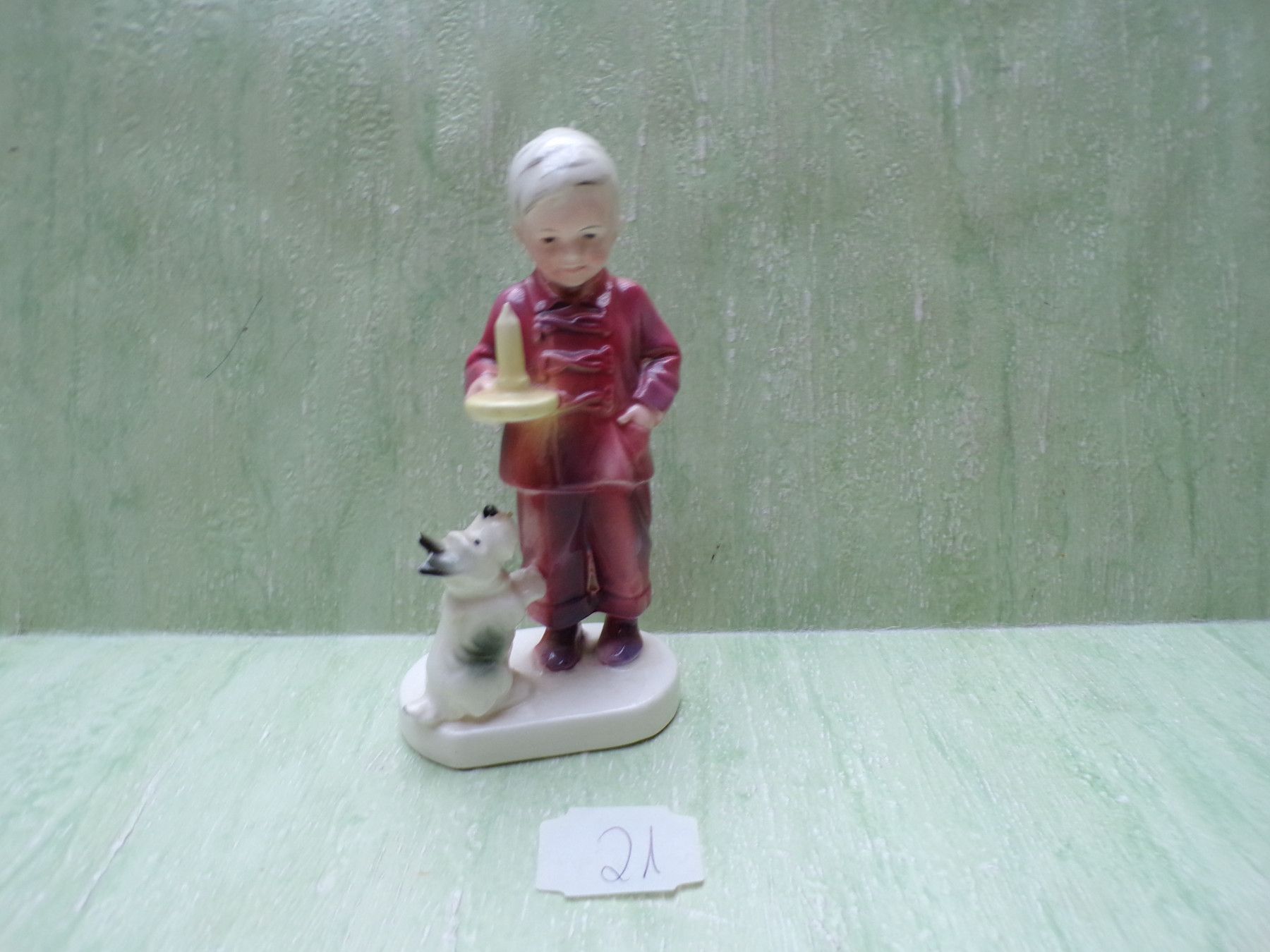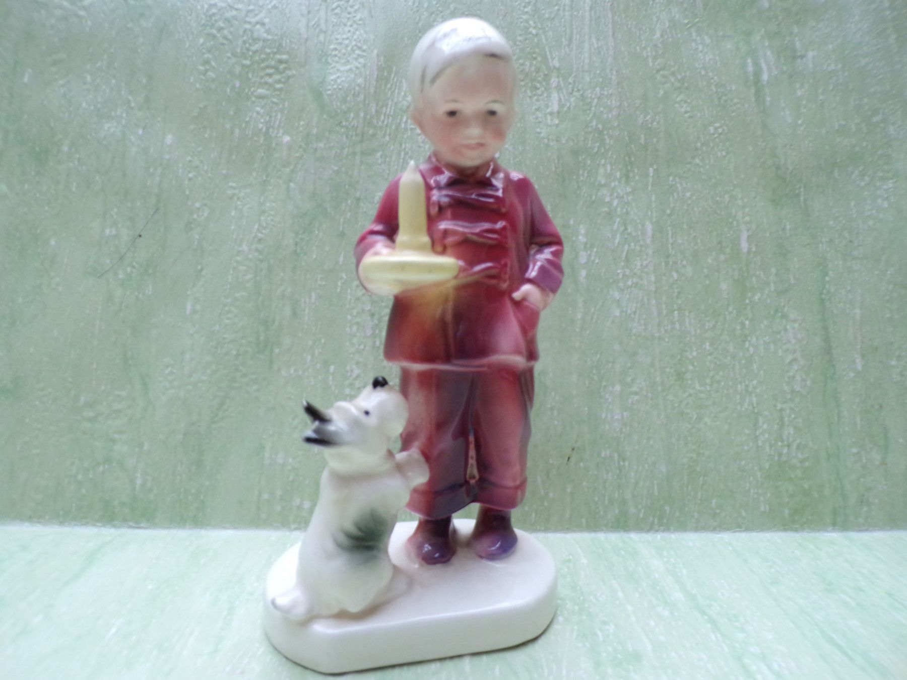 Katzhütte Thüringen Figur Kind Junge mit Nachlerze und Hund ca 13,5cm