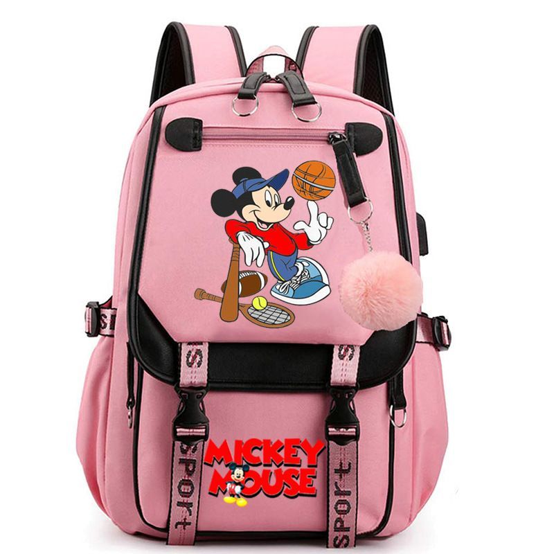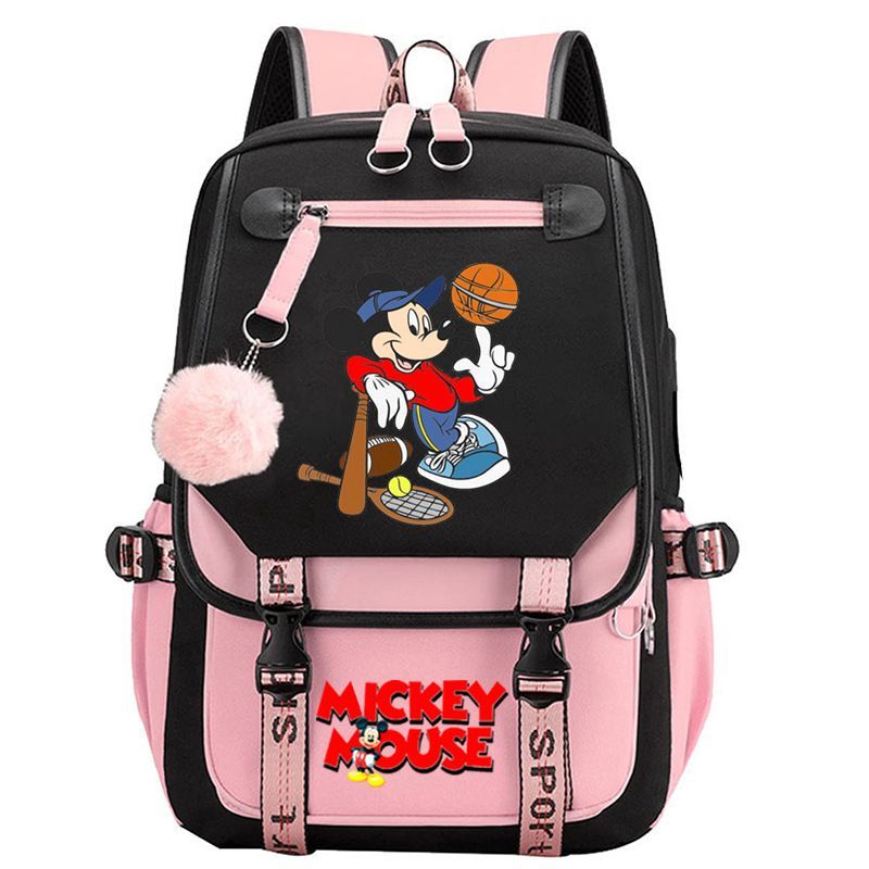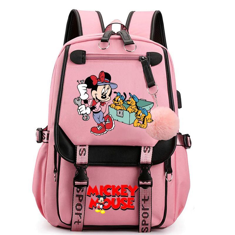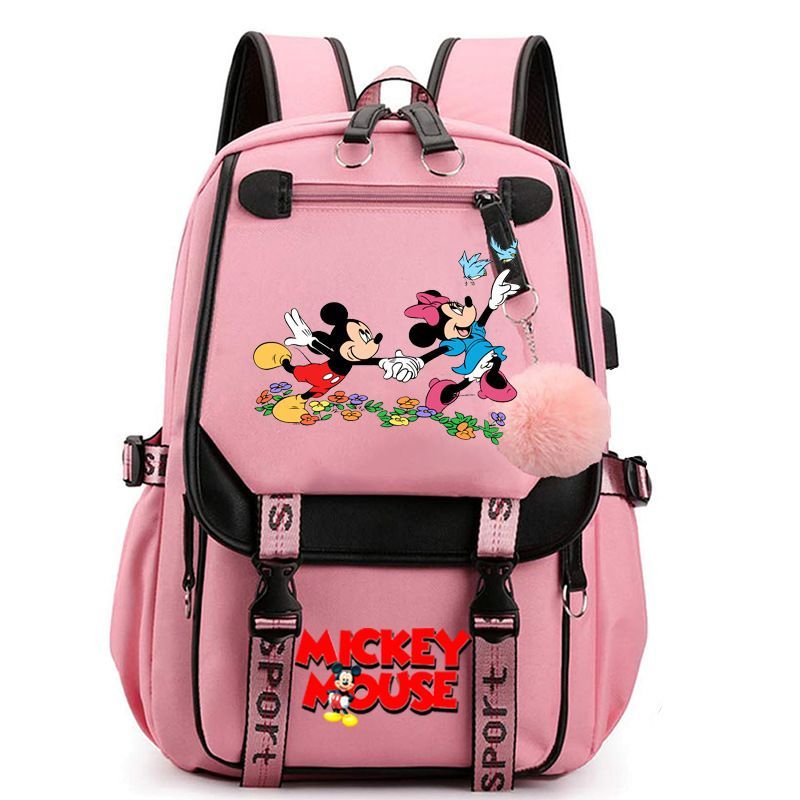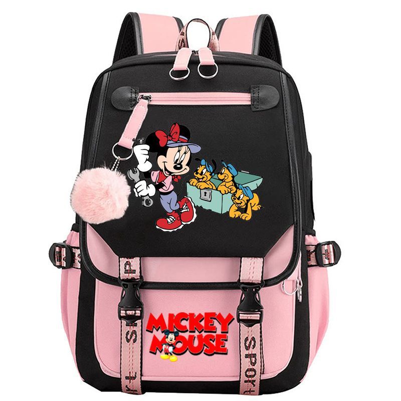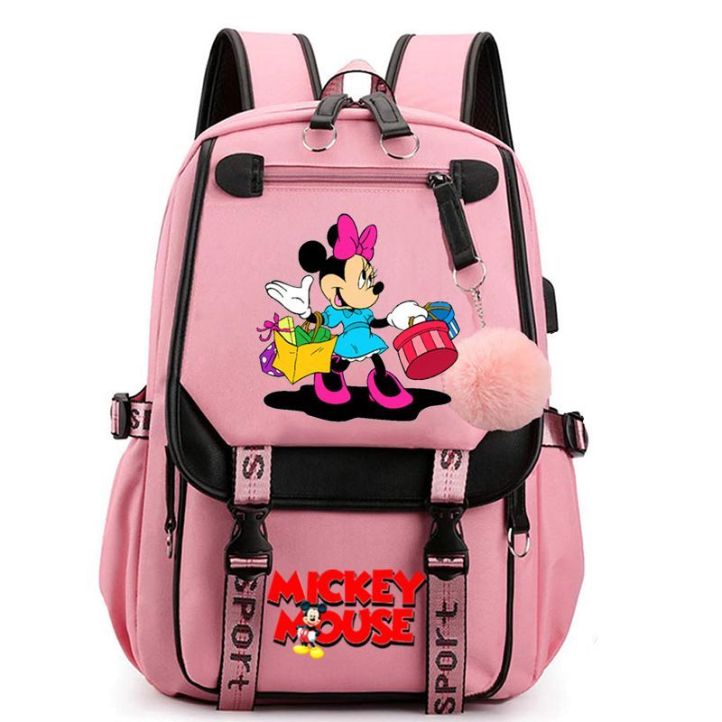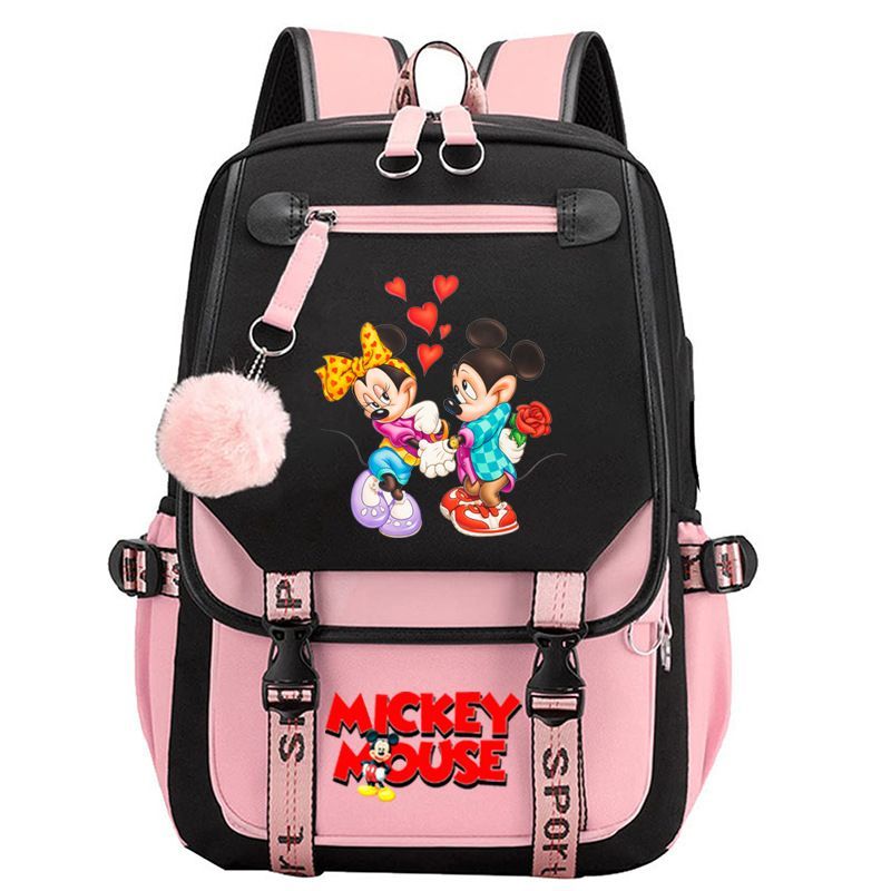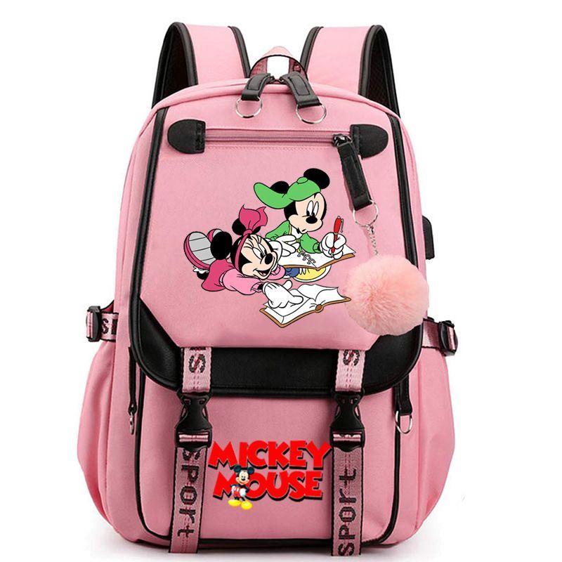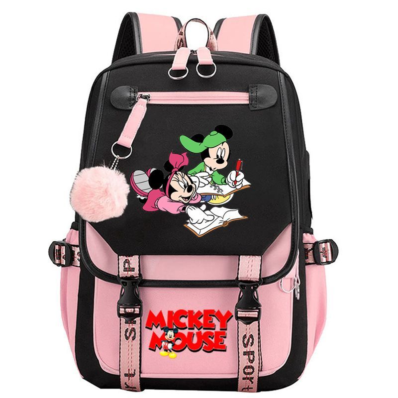 Kawaii Mickey Minnie USB-Lade Schultaschen College Stil Rucksack Outdoor Backpack