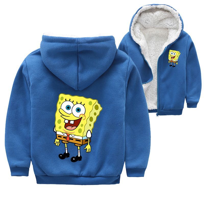 Kawaii SpongeBob Strickjacke Sweatshirt Kinder Verdickte Mantel Korallenvlies Hoody