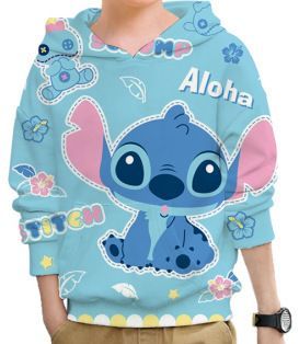 Kawaii Stitch Hoodie Kinder Sweatshirts Geschenk 3D Cartoon Druck Pullover mit Kapuze