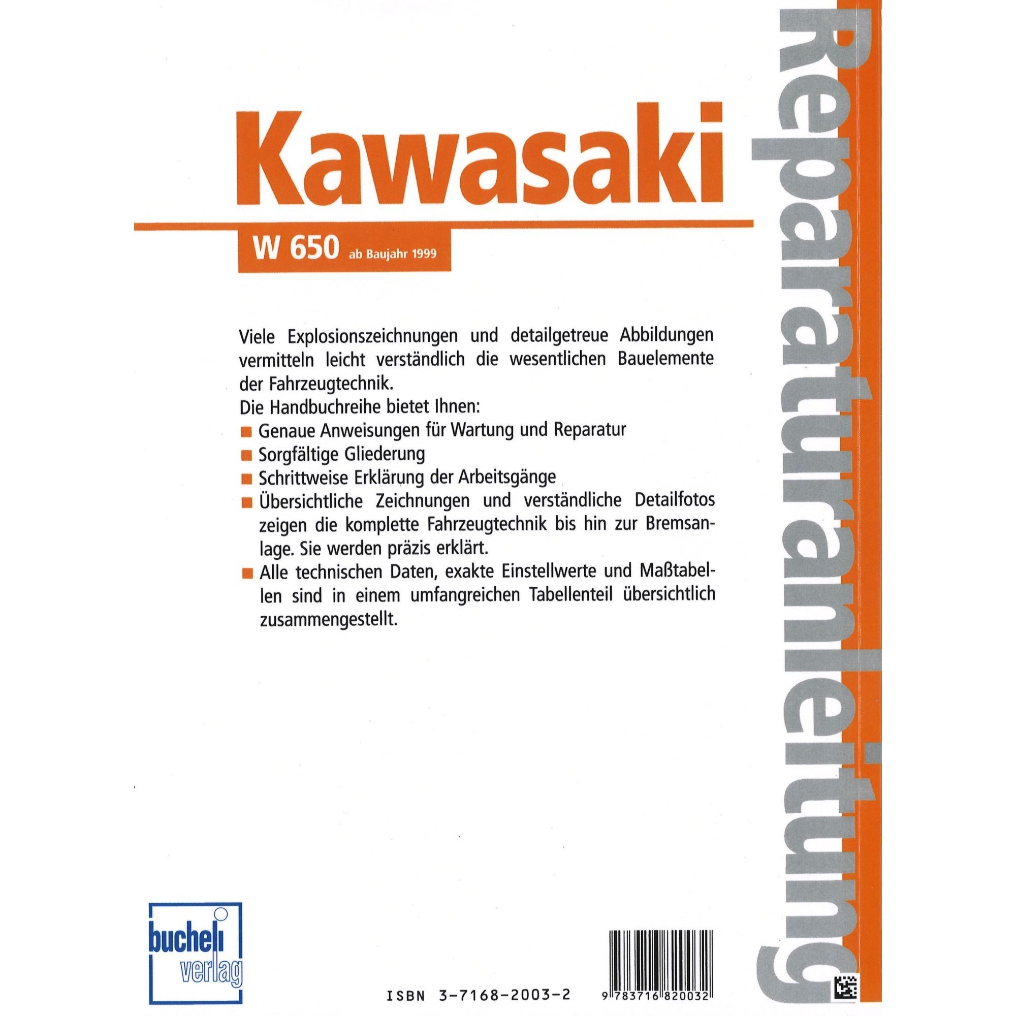 Kawasaki W 650 Baujahre ab 1999 Bucheli Reparaturanleitung Reparaturhandbuch