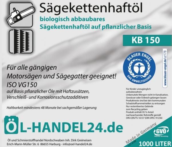 KB 150 Bio Kettenöl - 1000 Liter IBC "Blauer Engel" nach RAL-UZ 178 - ISO VG 150