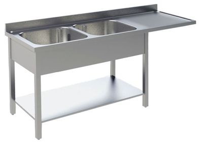 • Spülcenter Aus Edelstahl, Zwei Becken Rechts, 160 X 70