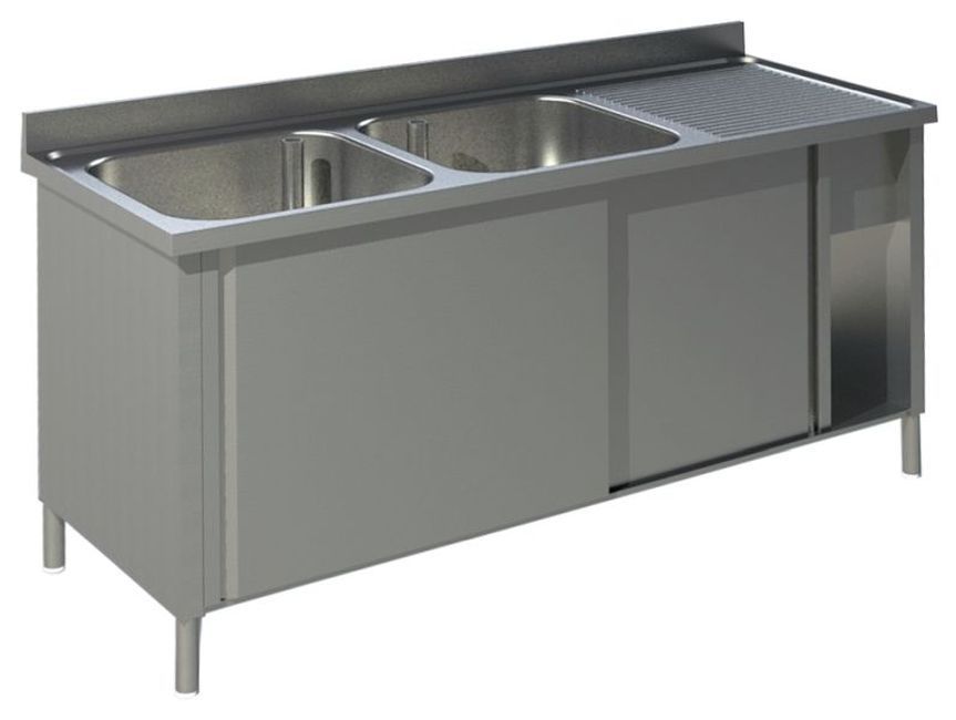 KBS KBS Spülschrank 2000x700x850 mm mit 2 Becken links mit Schiebetüren