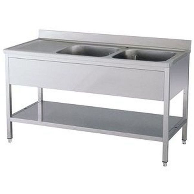 KBS KBS Spültisch 1800x700x850 mm mit Aufkantung 2 Becken rechts mit Grundboden