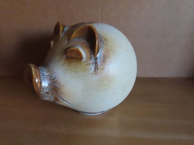 • Figur Schwein Spardose beige braun Keramik mit Schloß ca. 15 cm H