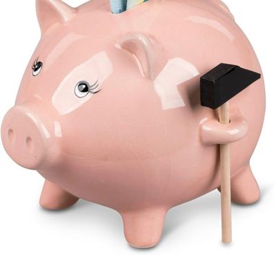 • Geldgeschenke Sparbuechse Spardose Schwein mit Hammer 16cm - nicht zum öffnen