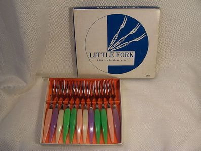 • 12 Little Fork Cocktail-Gabeln, 60/70er J.
