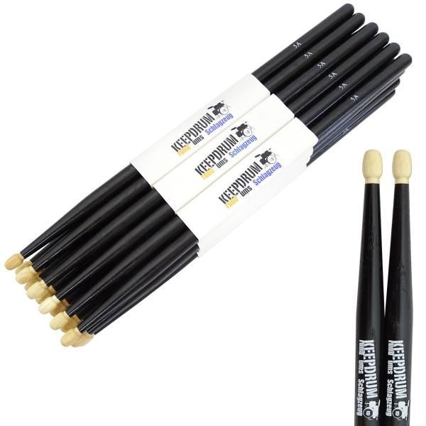keepdrum keepdrum 5AB Black Hickory Schlagzeugstöcke Schwarz 12 Paar