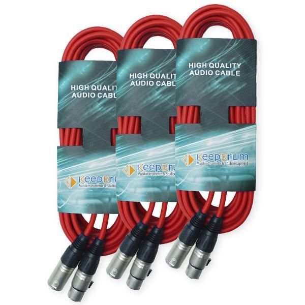 • keepdrum DMX Kabel Rot 3-pol XLR 3m 3 Stück