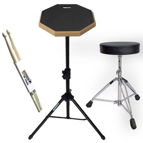 keepdrum keepdrum Übungspad-Set DP-BK8 schwarz mit Stativ Hocker und Drumsticks 1 Paar