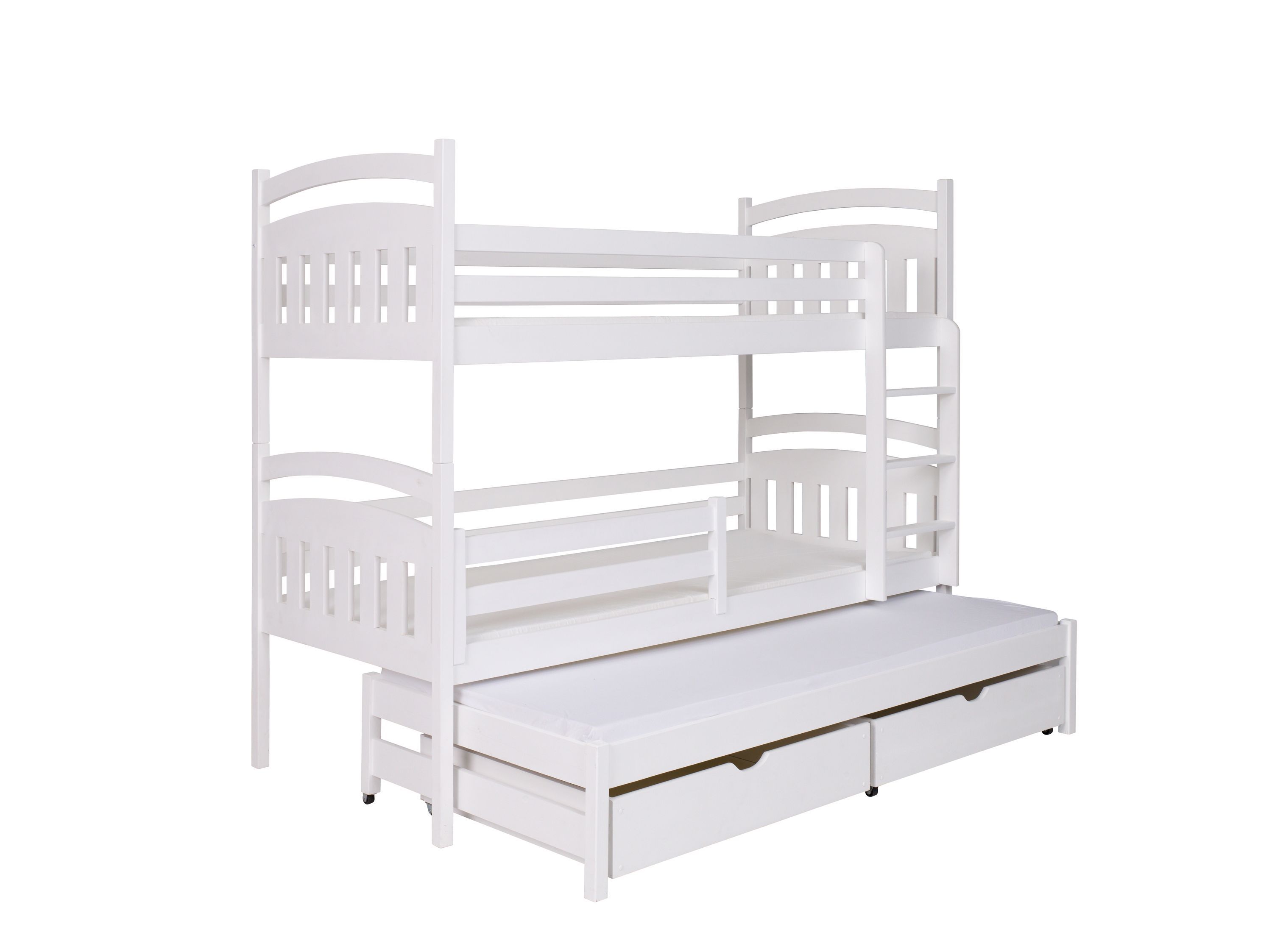 MENU Unsere angebote Bewertungen Kontakt hohe Qualität kostenlose Lieferung attraktive Preise modernes Design Maja Etagenbett Kinder - Etagenbett 3 Personen - Holz Kinderbett - für Drei Kinder - mit Schubladen - Ausziehbares Drittes Bett Euro Abmessungen: Breite: 88 cm Gesamtlänge: 168 178 188 198 2
