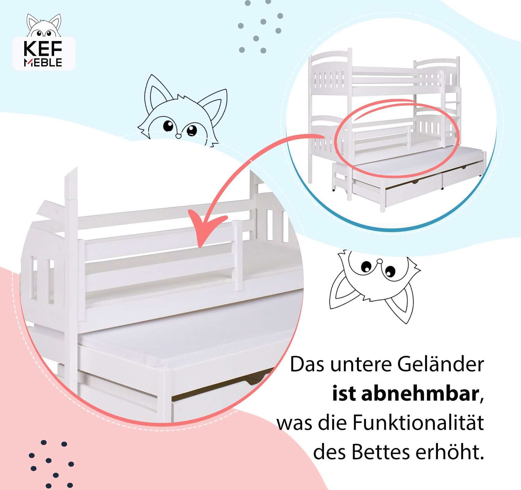 KEF-MEBLE Maja Etagenbett Kinder - Etagenbett 3 Personen - Holz Kinderbett