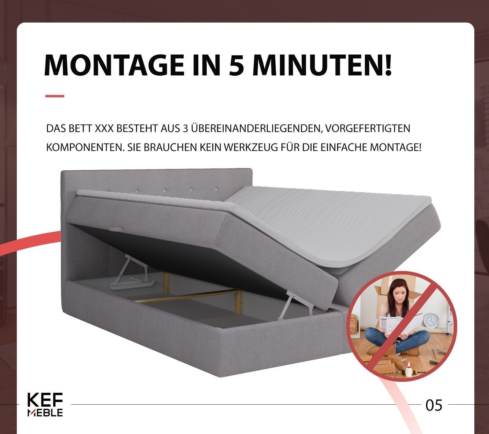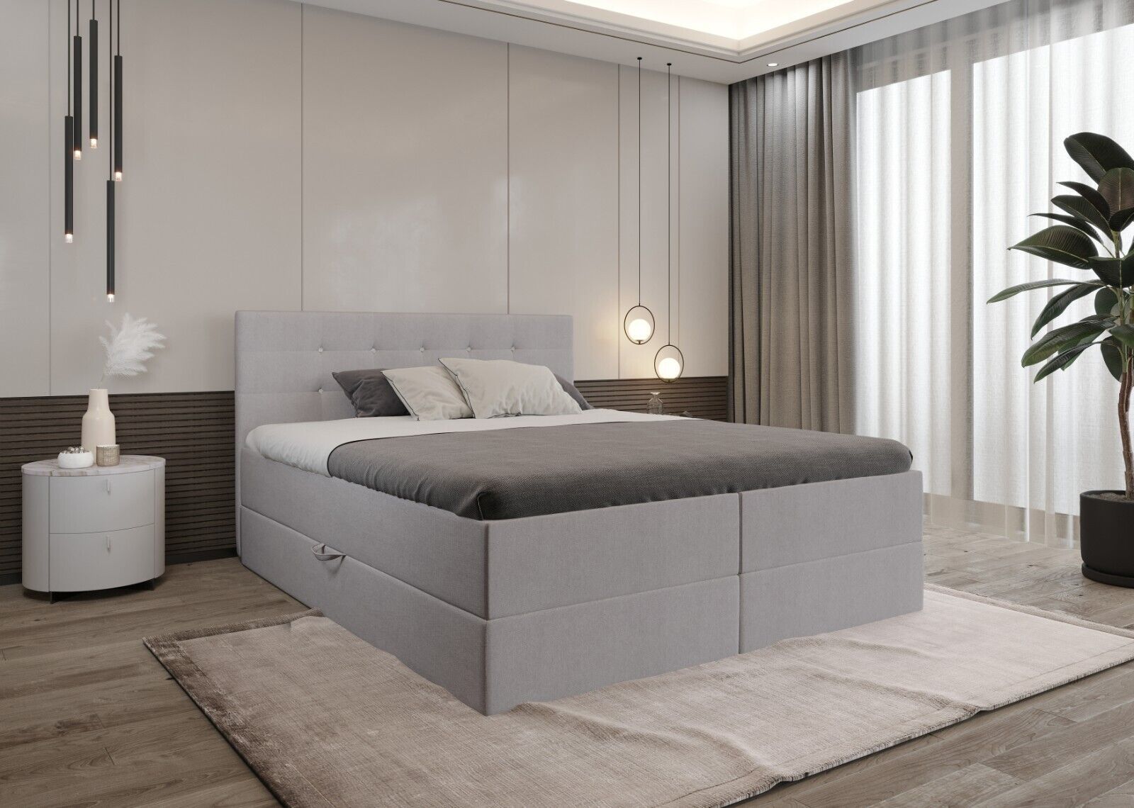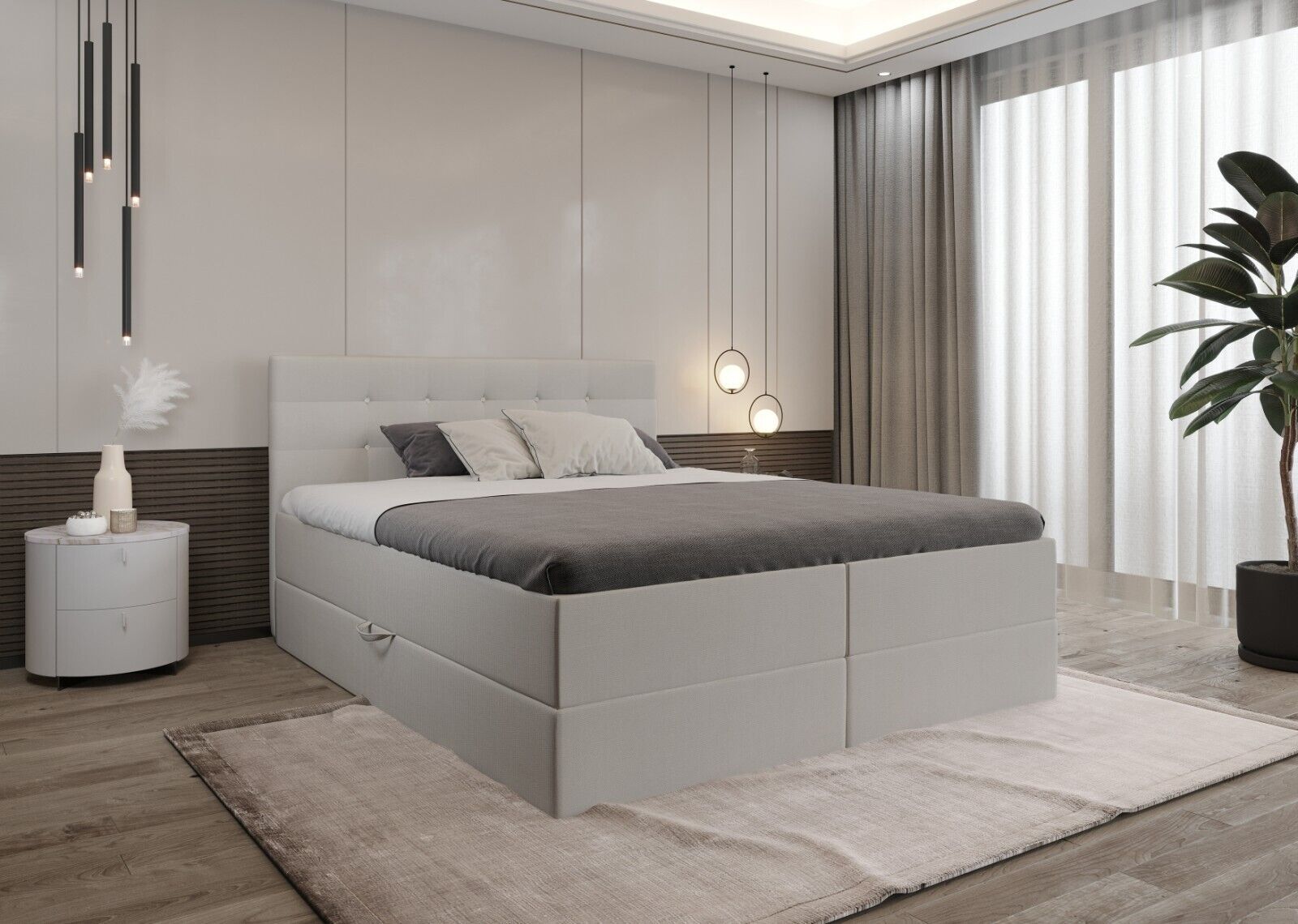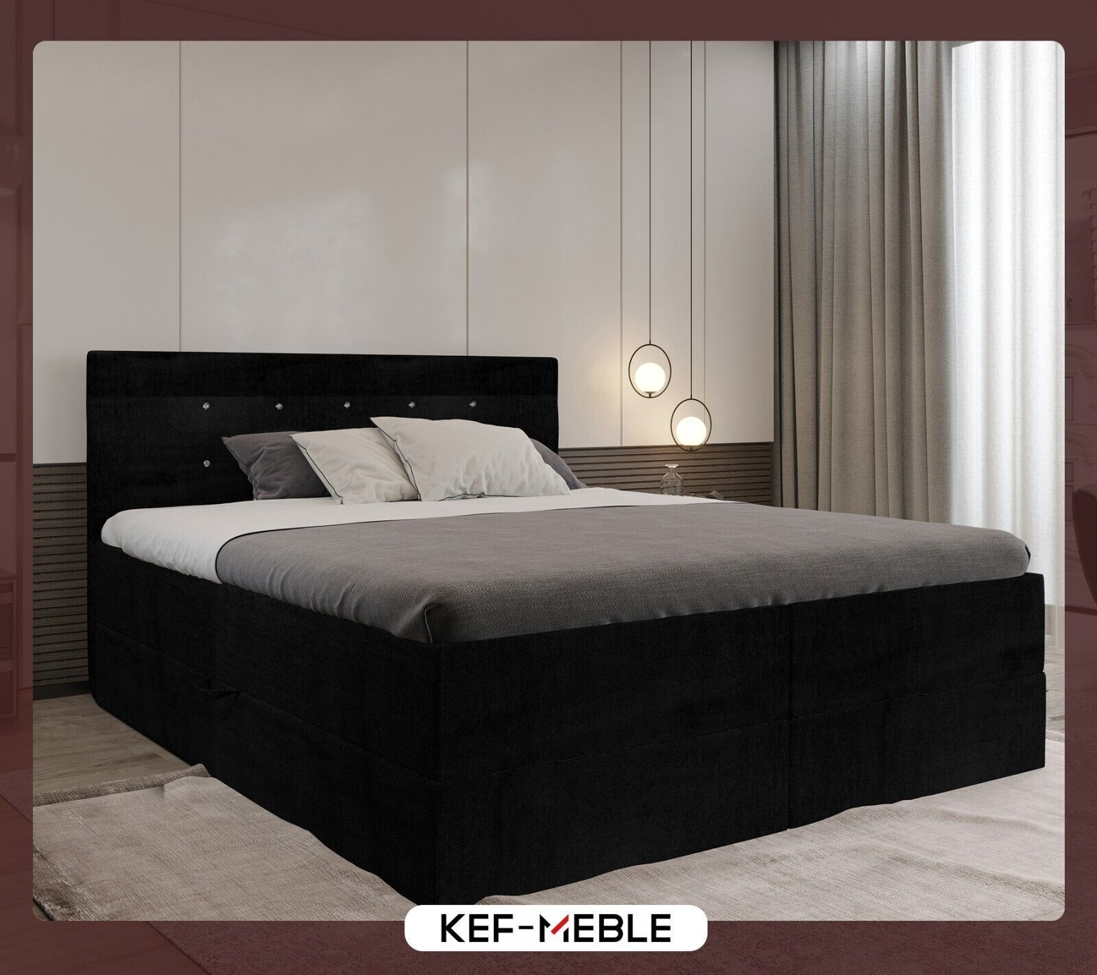 KEF-MEBLE Malaga Boxspringbett - Bett mit Matratze und Topper - Doppelbett